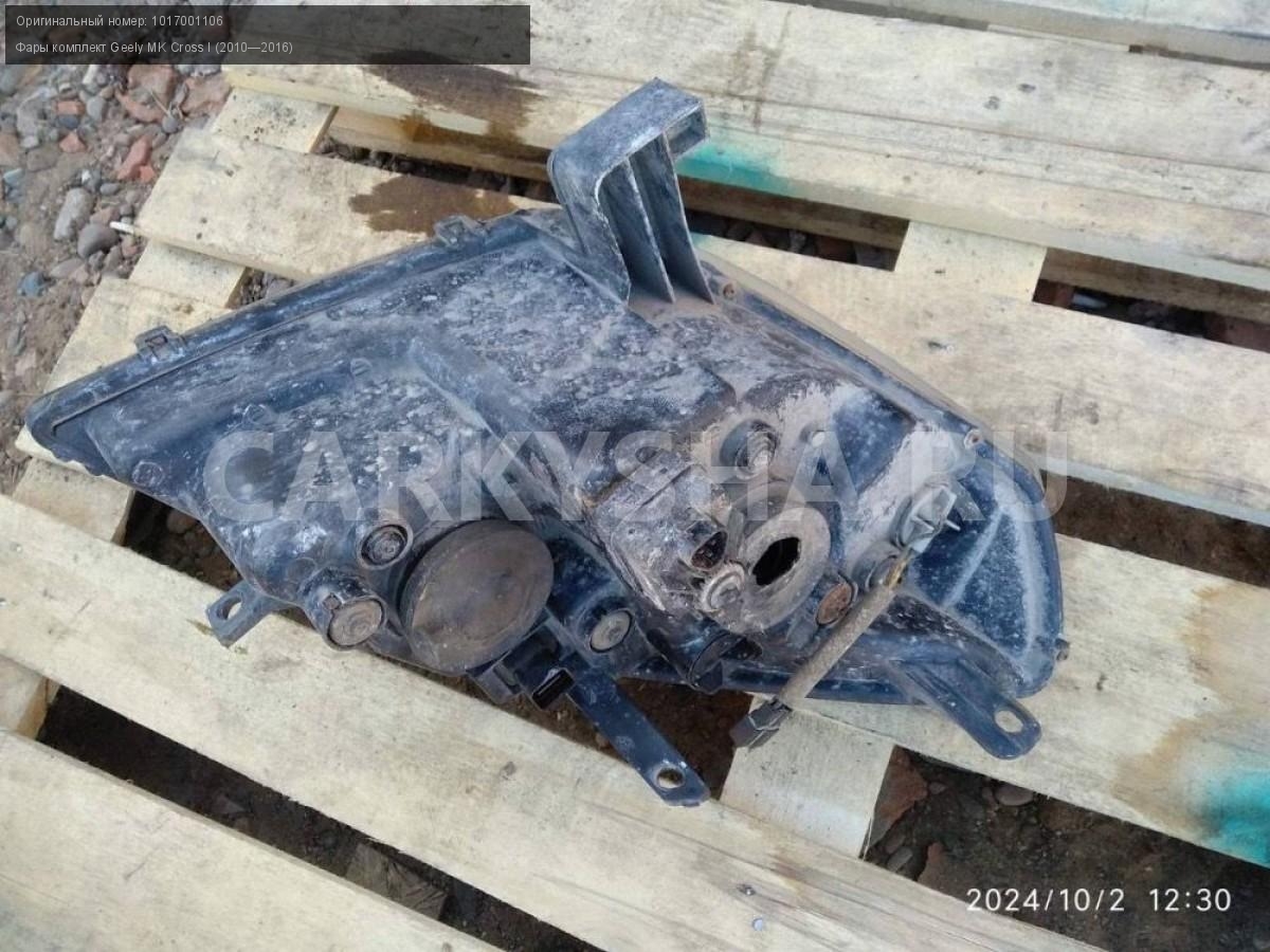 Geely MK Cross , фары пара.\nАртикул: 5852\n\nОриг. номер: 1017001106\nПроизводитель: GEELY\nПримечание:Джили МК Кросс, фары, цена за пару, б/у, состояние на фото. \n\nМарка: Geely\nМодель: MK Cross I (2010—2016)\nГод выпуска: 2012\nКузов тип: Хетчбэк\nМодель двигателя: инжектор\nОбъем: 1.5\nТопливо: Бензин\nКоробка: Механика\nПраво/Лево: Право/Лево\nПеред/Зад: Перед\nСовместимости: Geely MK Cross I (2010—2016) 1.5 MT (94 л.с.)\nСовместимость:
