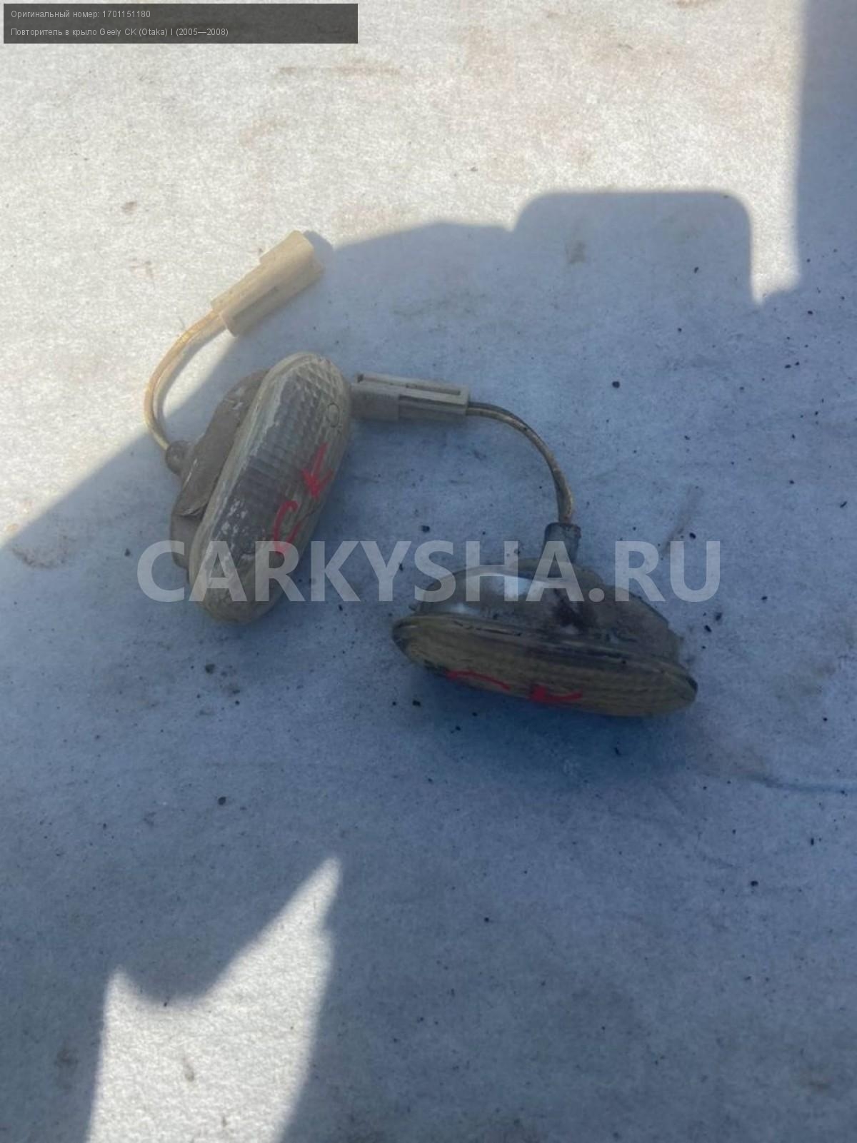 Geely CK (Otaka) I, повторители в крыло\nАртикул: 2837\n\nОриг. номер: 1701151180\nПроизводитель: GEELY\nПримечание:Джилли СК Отака 1, повторители поворотников в крыло, цена за пару, б/у\n\nМарка: Geely\nМодель: CK (Otaka) I (2005—2008)\nГод выпуска: 2008\nКузов тип: Седан\nДвигатель номер: MR479QA\nМодель двигателя: инжектор\nОбъем: 1.5\nТопливо: Бензин\nКоробка: Механика\nЦвет: Черный\nСовместимости: Geely CK (Otaka) I (2005—2008) 1.5 MT (94 л.с.)\nСовместимость:
