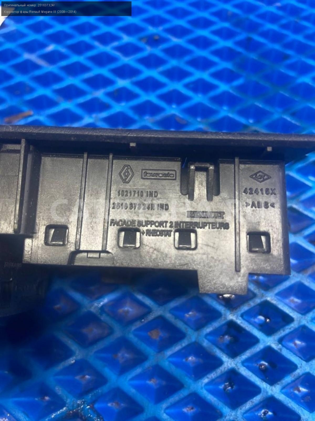 Renault Megane III, Блок корректора фар.\nАртикул: 7561\n\nОриг. номер: 251637324r\nПроизводитель: RENAULT\nПримечание:Рено Меган 3, блок корректора фар, б/у. \n\nМарка: Renault\nМодель: Megane III (2008—2014)\nГод выпуска: 2011\nКузов тип: Хетчбэк\nДвигатель номер: K4MV838\nМодель двигателя: инжектор\nОбъем: 1.6\nТопливо: Бензин\nКоробка: Механика\nЦвет: Темно-Серый\nСовместимости: Renault Megane III (2008—2014) 1.6 MT (106 л.с.)\nСовместимость: