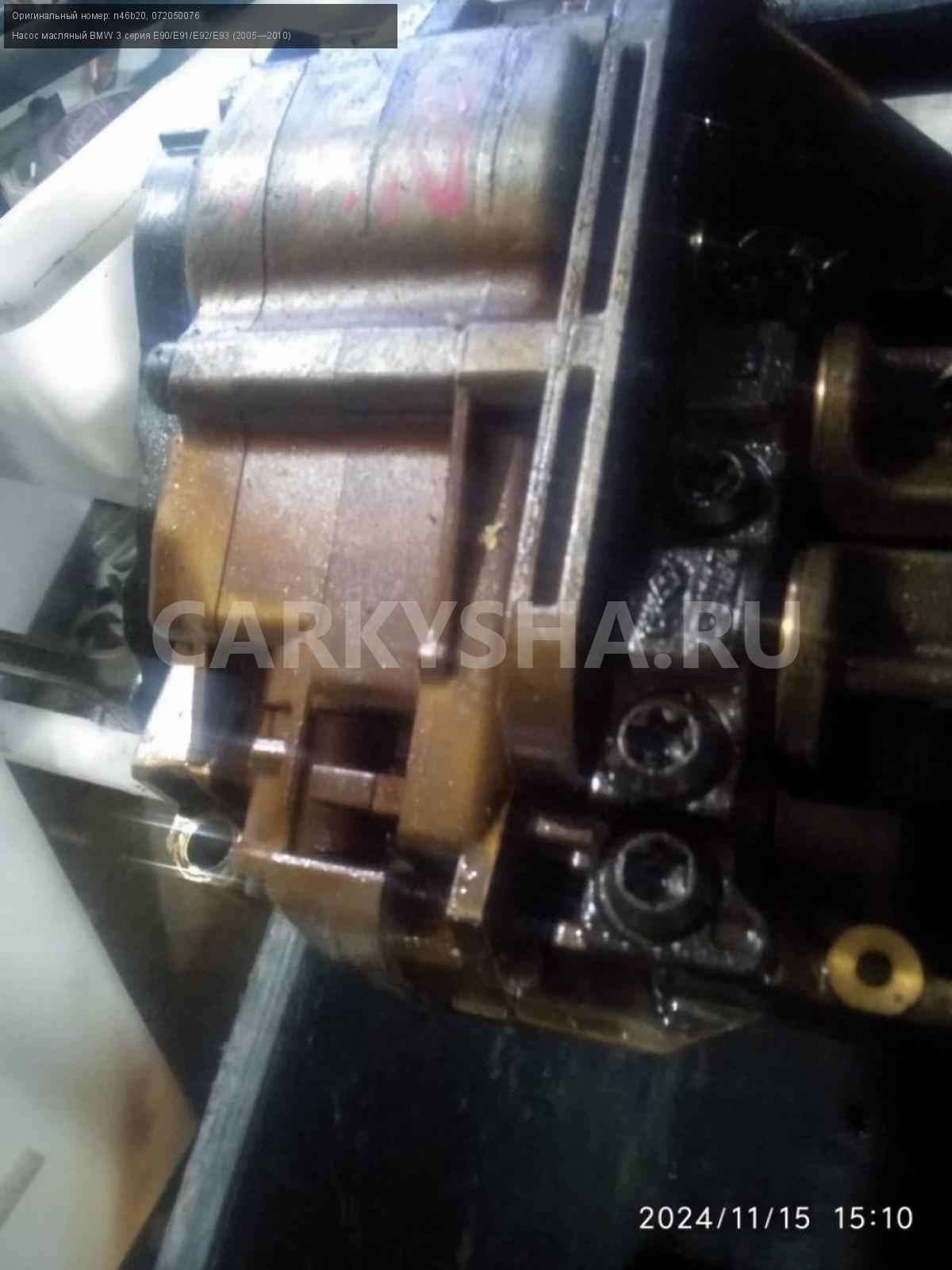 BMW 3 серия E90, масляный насос n46b20.\nАртикул: 6322\n\nОриг. номер: n46b20\nНомера замен: 072050076\nПроизводитель: BMW\nПримечание:Бмв 3 серии е90 масляный насос n46b20 , б/у. \n\nМарка: BMW\nМодель: 3 серия E90/E91/E92/E93 (2005—2010)\nСовместимости: BMW 3 серия E90/E91/E92/E93 (2005—2010)\nСовместимость: