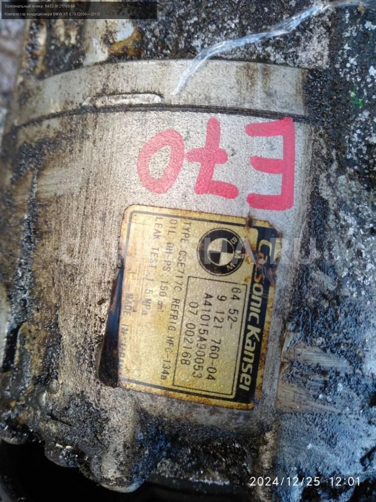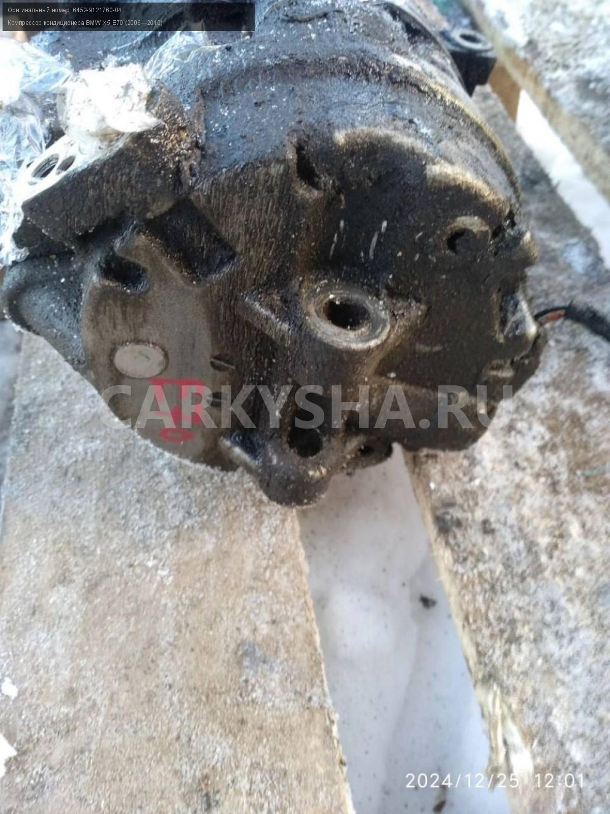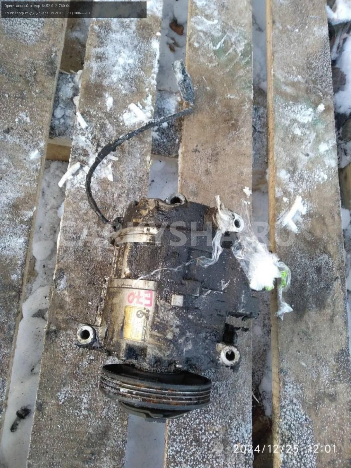BMW X5 E70, 4.8 Компрессор кондиционера.\nАртикул: 6625\n\nОриг. номер: 6452-9121760-04\nПроизводитель: BMW\nПримечание:БМВ Х5 Е70, 4.8 Компрессор кондиционера, б/у. \n\nМарка: BMW\nМодель: X5 E70 (2006—2010)\nГод выпуска: 2008\nКузов тип: Внедорожник\nДвигатель номер: N62B48\nМодель двигателя: инжектор\nОбъем: 4.8\nТопливо: Бензин\nКоробка: Автомат\nЦвет: Бежевый\nСовместимости: BMW X5 E70 (2006—2010) 48i 4.8 AT (355 л.с.)\nСовместимость: