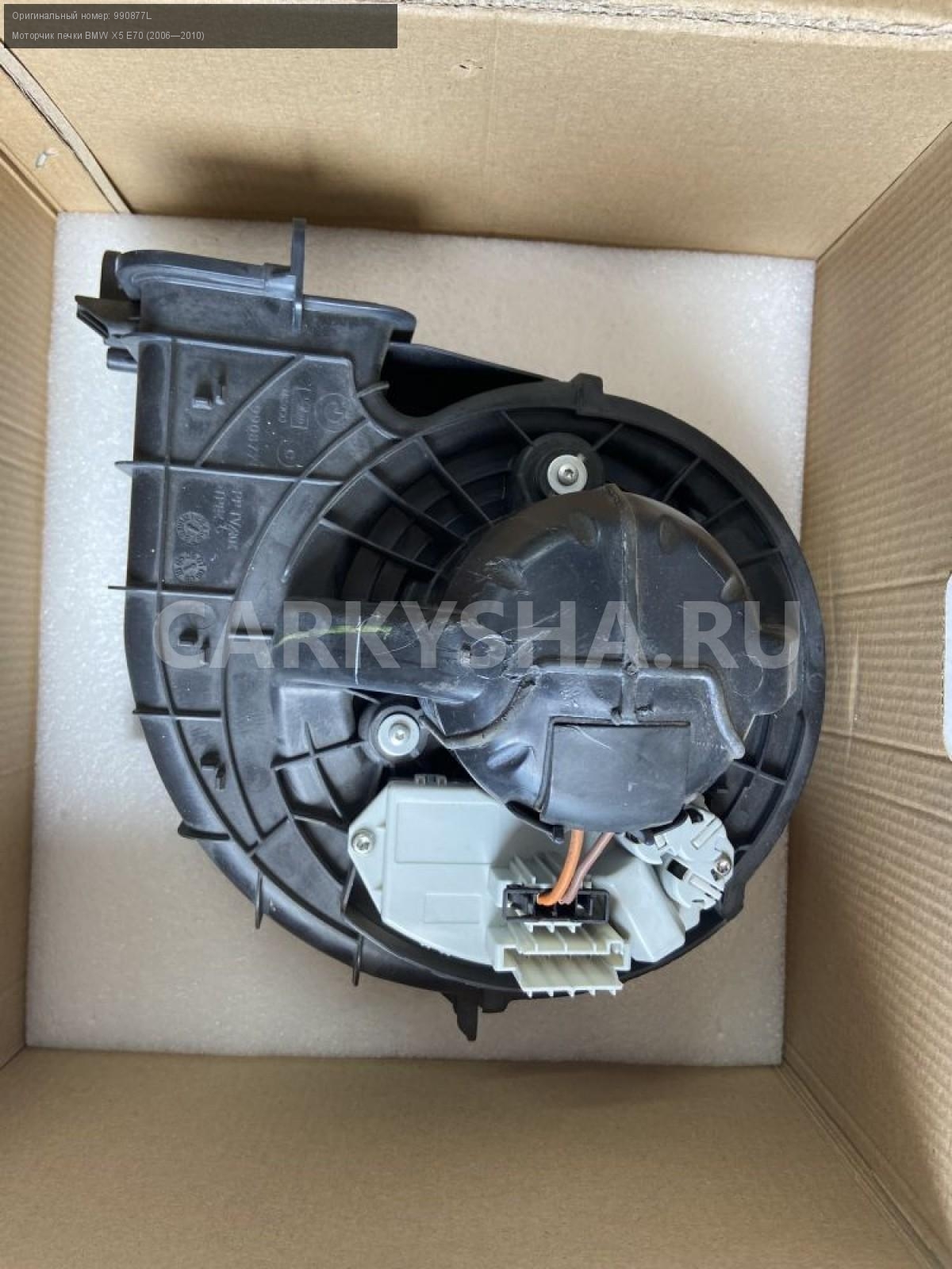 Моторчик печки BMW x5, e70 с дефектом\nАртикул: 2594\n\nОриг. номер: 990877L\nПроизводитель: BMW\nПримечание:Бмв Х5 Е70 моторчик печки под двухзонный климат, работает через раз бу оригинал \n\nМарка: BMW\nМодель: X5 E70 (2006—2010)\nСовместимости: BMW X5 E70 (2006—2010)\nСовместимость: