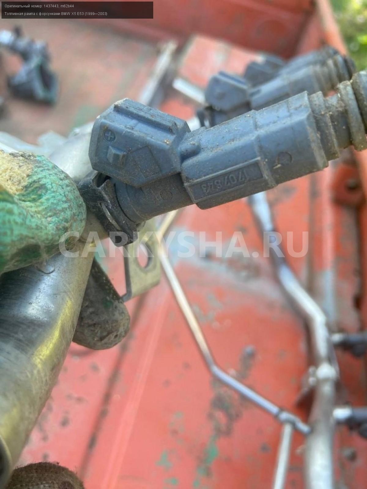 BMW X5 E53, рампа топливная с форсунками\nАртикул: 2856\n\nОриг. номер: 1437443\nНомера замен: m62b44\nПроизводитель: BMW\nПримечание:БМВ X5 E53, рампа топливная с форсунками в сборе, б/у\n\nМарка: BMW\nМодель: X5 E53 (1999—2003)\nСовместимости: BMW X5 E53 (1999—2003) 4.4i 4.4 AT (286 л.с.)\nСовместимость:
