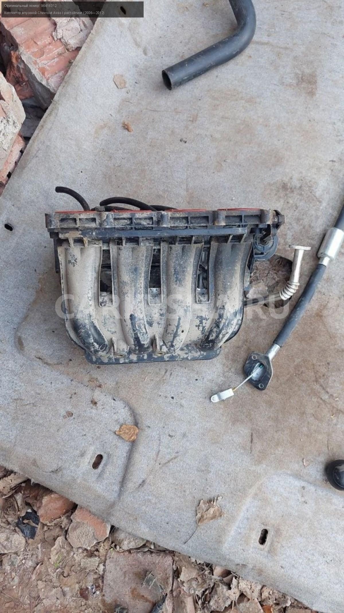 Chevrolet Aveo Т250, впускной коллектор\nАртикул: 3155\n\nОриг. номер: 96416312\nПроизводитель: CHEVROLET\nПримечание:Шевроле Авео Т250, впускной коллектор , отверстия под газ, б/у\n\nМарка: Chevrolet\nМодель: Aveo I рестайлинг (2006—2012)\nГод выпуска: 2010\nКузов тип: Седан\nДвигатель номер: B12D1\nМодель двигателя: инжектор\nОбъем: 1.2\nТопливо: Бензин\nКоробка: Механика\nЦвет: Белый\nСовместимости: Chevrolet Aveo I рестайлинг (2006—2012) 1.2 MT (84 л.с.)\nСовместимость: