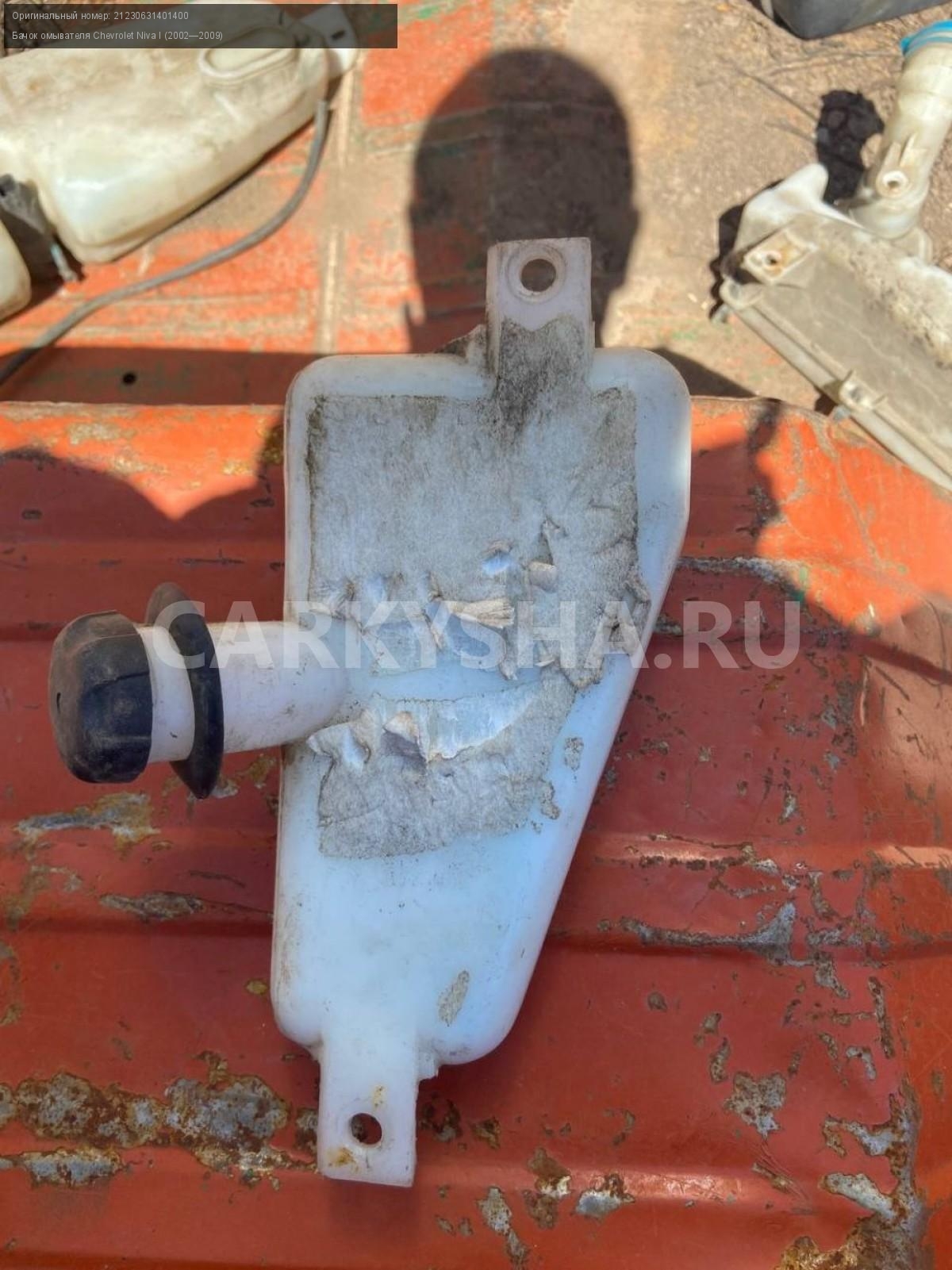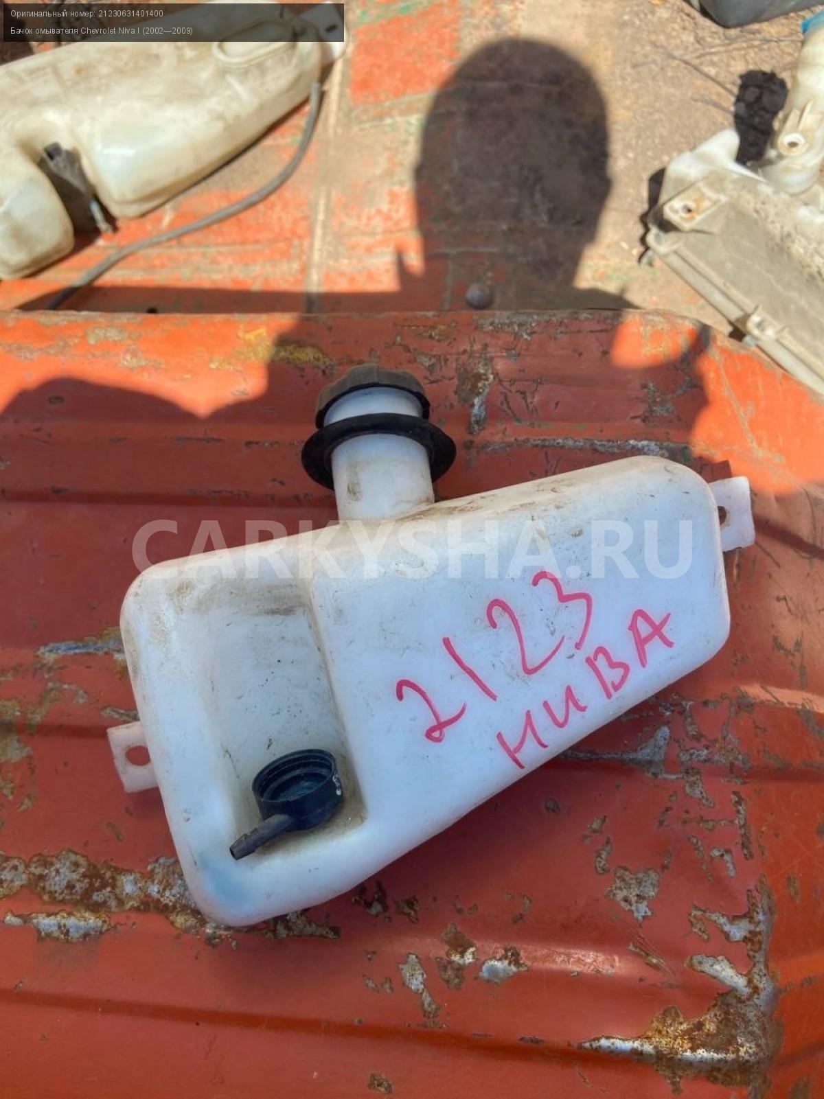 Chevrolet Niva, задний бачок омывателя.\nАртикул: 5031\n\nОриг. номер: 21230631401400\nПроизводитель: CHEVROLET\nПримечание:Шевроле Нива, задний бачок омывателя, б/у. \n\nМарка: Chevrolet\nМодель: Niva I (2002—2009)\nПеред/Зад: Зад\nСовместимости: Chevrolet Niva I (2002—2009)\nСовместимость: