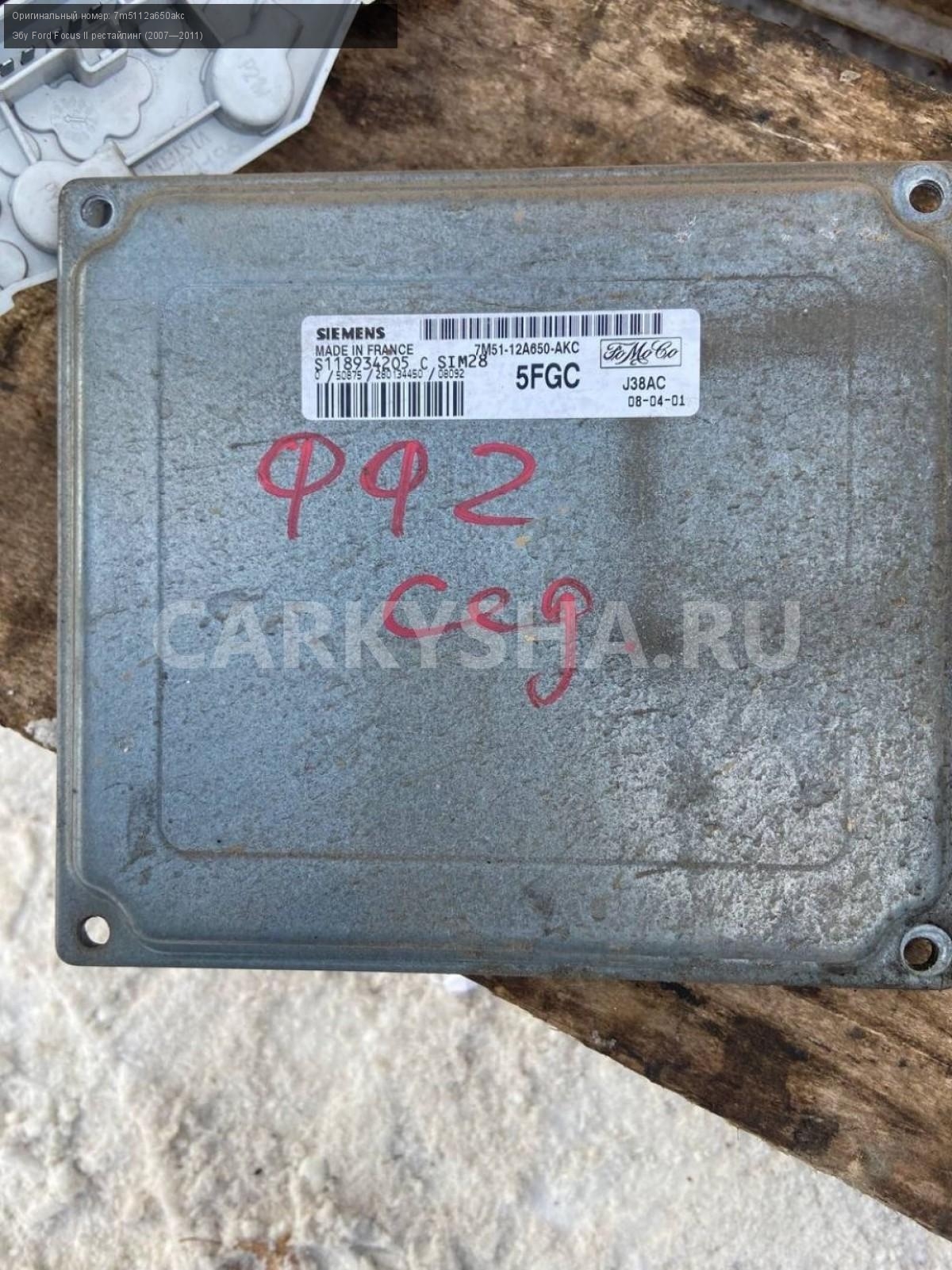 Ford Focus II 1.6 блок управления двигателем.\nАртикул: 6982\n\nОриг. номер: 7m5112a650akc\nПроизводитель: FORD\nПримечание:Форд Фокус 2 , 1.6 , блок управления двигателем, ЭБУ, мозги, б/у. \n\nМарка: Ford\nМодель: Focus II рестайлинг (2007—2011)\nГод выпуска: 2008\nКузов тип: Седан\nДвигатель номер: SHDA\nМодель двигателя: инжектор\nОбъем: 1.6\nТопливо: Бензин\nКоробка: Механика\nЦвет: Черный\nСовместимости: Ford Focus II рестайлинг (2007—2011) 1.6 MT (100 л.с.)\nСовместимость:
