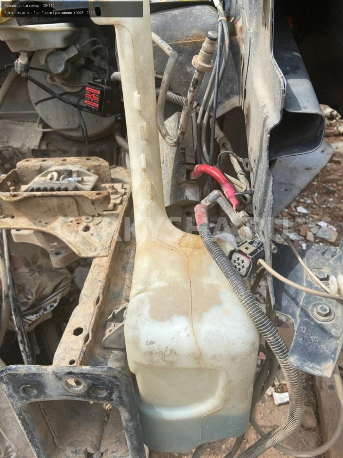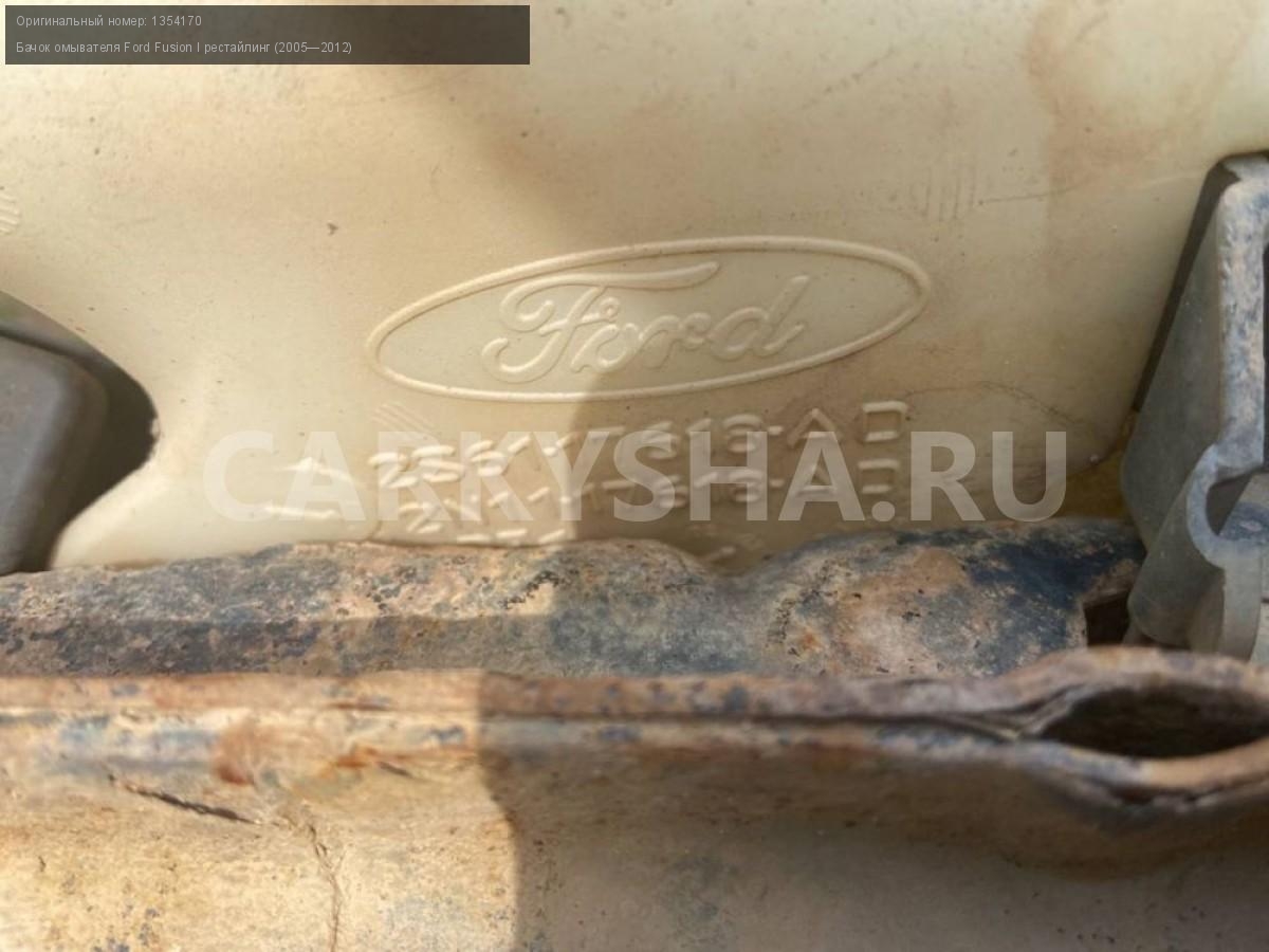 Ford Fusion I рестайлинг, бачок омывателя\nАртикул: 2716\n\nОриг. номер: 1354170\nПроизводитель: FORD\nПримечание:Форд Фьюжн 1 рестайлинг, бачок омывателя, б/у\n\nМарка: Ford\nМодель: Fusion I рестайлинг (2005—2012)\nГод выпуска: 2010\nКузов тип: Хетчбэк\nДвигатель номер: FXJA\nМодель двигателя: инжектор\nОбъем: 1.4\nТопливо: Бензин\nКоробка: Механика\nЦвет: Черный\nСовместимости: Ford Fusion I рестайлинг (2005—2012) 1.4 MT (80 л.с.)\nСовместимость: