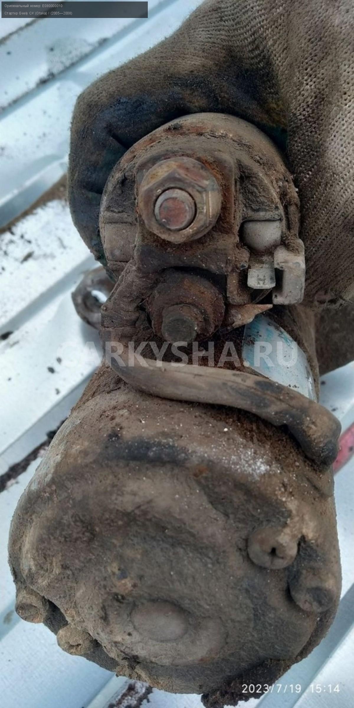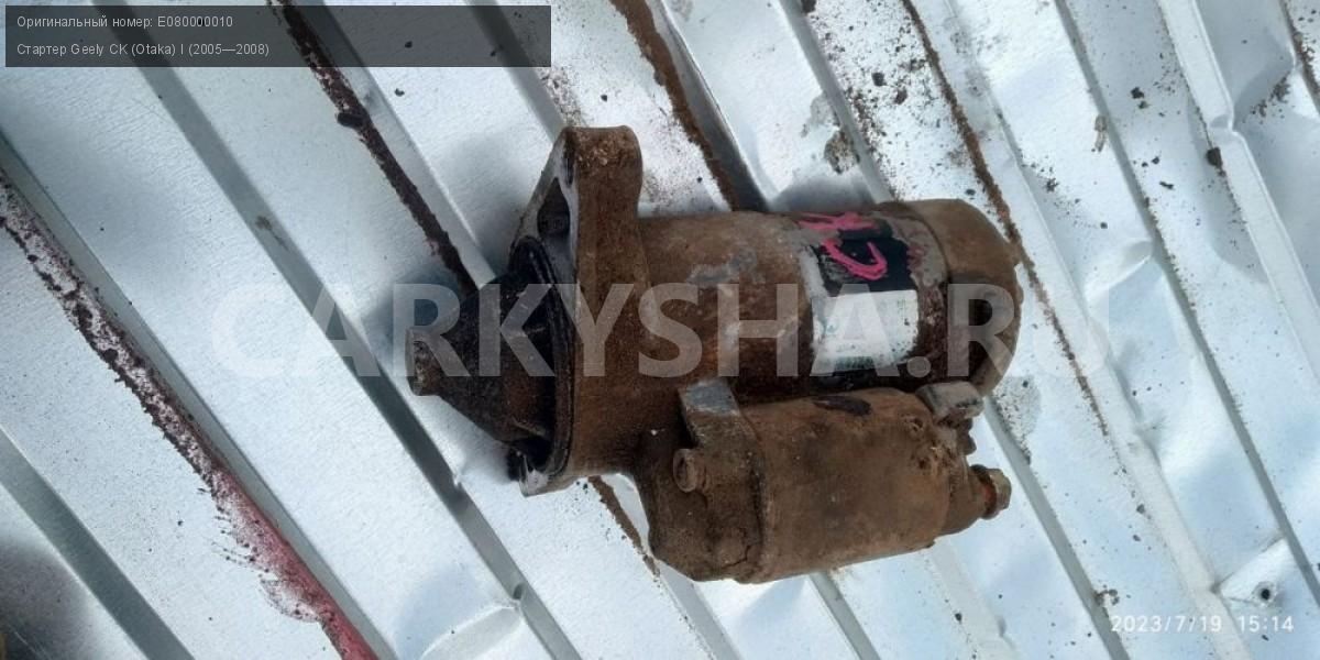 Geely CK (Otaka) I, стартер\nАртикул: 2543\n\nОриг. номер: E080000010\nПроизводитель: GEELY\nПримечание:Джилли СК Отака , стартер б/у\n\nМарка: Geely\nМодель: CK (Otaka) I (2005—2008)\nГод выпуска: 2008\nКузов тип: Седан\nДвигатель номер: MR479QA\nМодель двигателя: инжектор\nОбъем: 1.5\nТопливо: Бензин\nКоробка: Механика\nЦвет: Черный\nСовместимости: Geely CK (Otaka) I (2005—2008) 1.5 MT (94 л.с.)\nСовместимость: