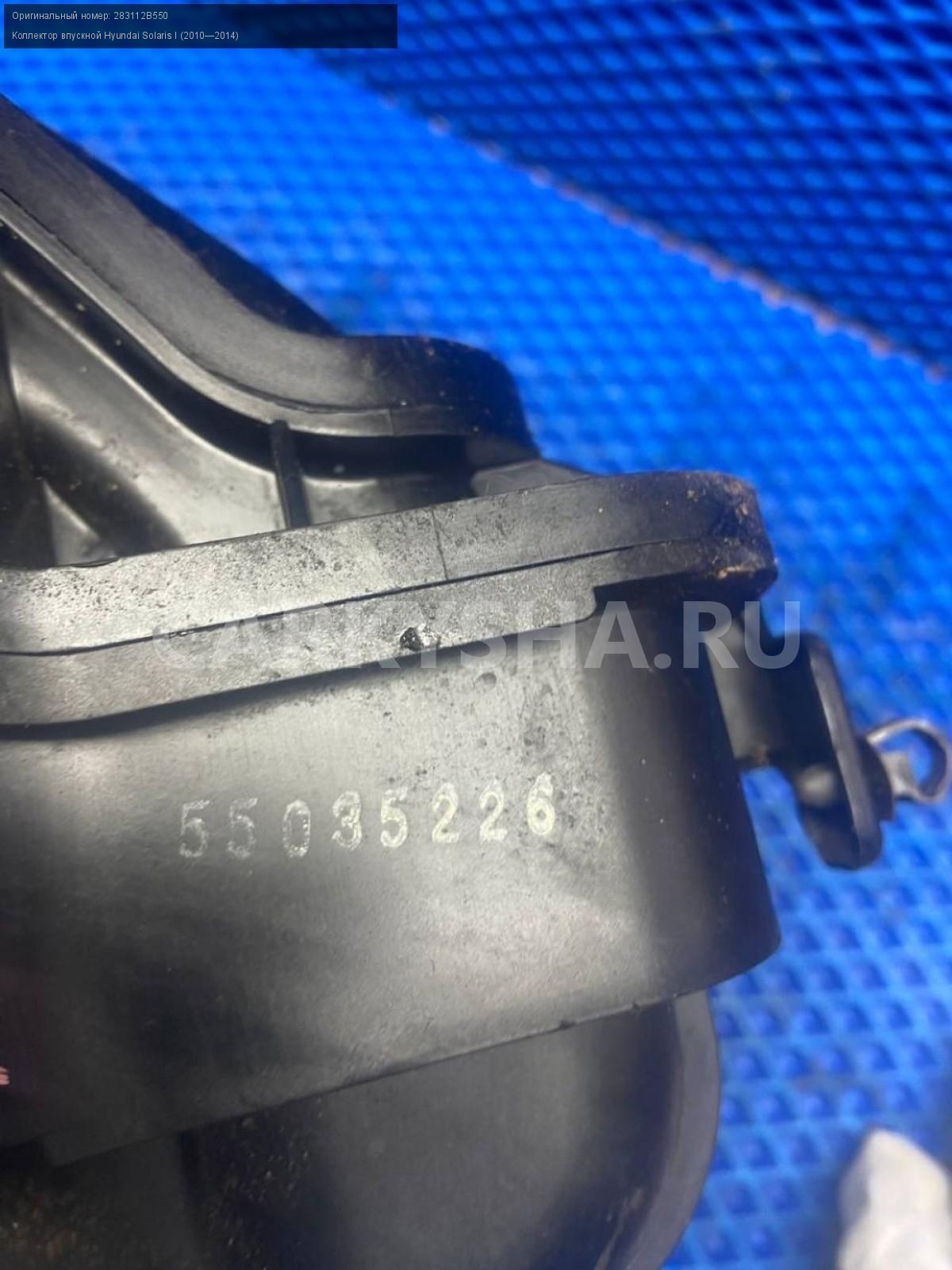 Hyundai Solaris I, 1.6 G4FC Коллектор впускной.\nАртикул: 7633\n\nОриг. номер: 283112B550\nПроизводитель: Hyundai-KIA\nПримечание:Хендай Солярис 1, 1.6 G4FC, коллектор впускной, б/у. \n\nМарка: Hyundai\nМодель: Solaris I (2010—2014)\nГод выпуска: 2014\nКузов тип: Седан\nДвигатель номер: G4FC\nМодель двигателя: инжектор\nОбъем: 1.6\nТопливо: Бензин\nКоробка: Механика\nЦвет: Черный\nСовместимости: Hyundai Solaris I (2010—2014) 1.6 MT (123 л.с.)\nСовместимость: