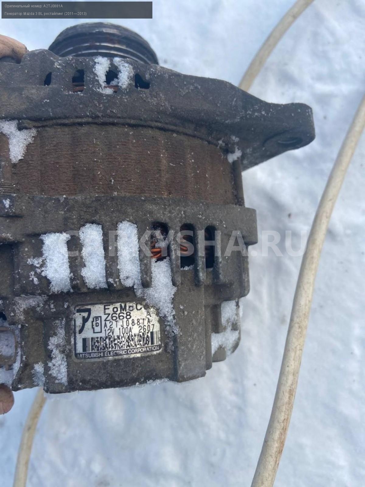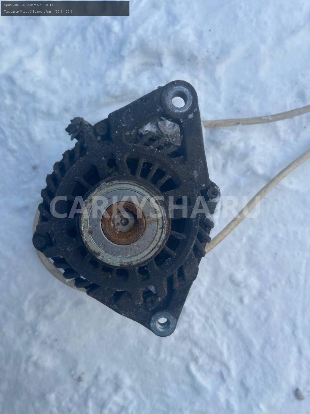 Mazda 3 BL, 1.6, генератор.\nАртикул: 4264\n\nОриг. номер: A2TJ0881A\nПроизводитель: MAZDA\nПримечание:Мазда 3 BL 1.6, генератор, б/у. \n\nМарка: Mazda\nМодель: 3 BL рестайлинг (2011—2013)\nГод выпуска: 2012\nКузов тип: Седан\nДвигатель номер: Z6\nМодель двигателя: инжектор\nОбъем: 1.6\nТопливо: Бензин\nКоробка: Автомат\nЦвет: Темно-Сервй\nСовместимости: Mazda 3 BL рестайлинг (2011—2013) 1.6 AT (105 л.с.)\nСовместимость: