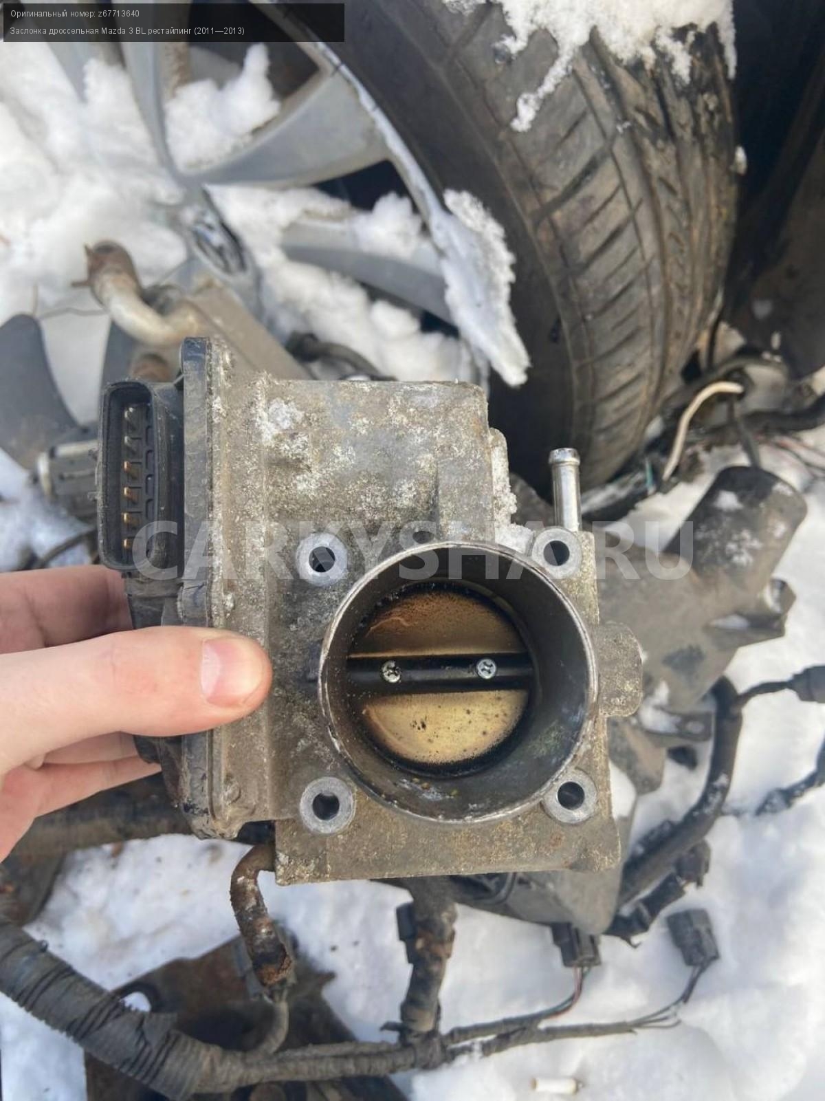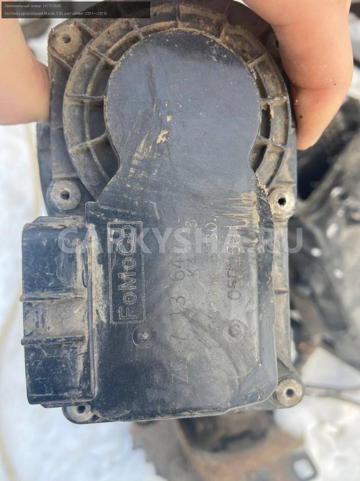 Mazda 3 BL, 1.6, Заслонка дроссельная.\nАртикул: 4263\n\nОриг. номер: z67713640\nПроизводитель: MAZDA\nПримечание:Мазда 3 BL, 1.6, заслонка дроссельная, б/у. \n\nМарка: Mazda\nМодель: 3 BL рестайлинг (2011—2013)\nГод выпуска: 2012\nКузов тип: Седан\nДвигатель номер: Z6\nМодель двигателя: инжектор\nОбъем: 1.6\nТопливо: Бензин\nКоробка: Автомат\nЦвет: Темно-Сервй\nСовместимости: Mazda 3 BL рестайлинг (2011—2013) 1.6 AT (105 л.с.)\nСовместимость: