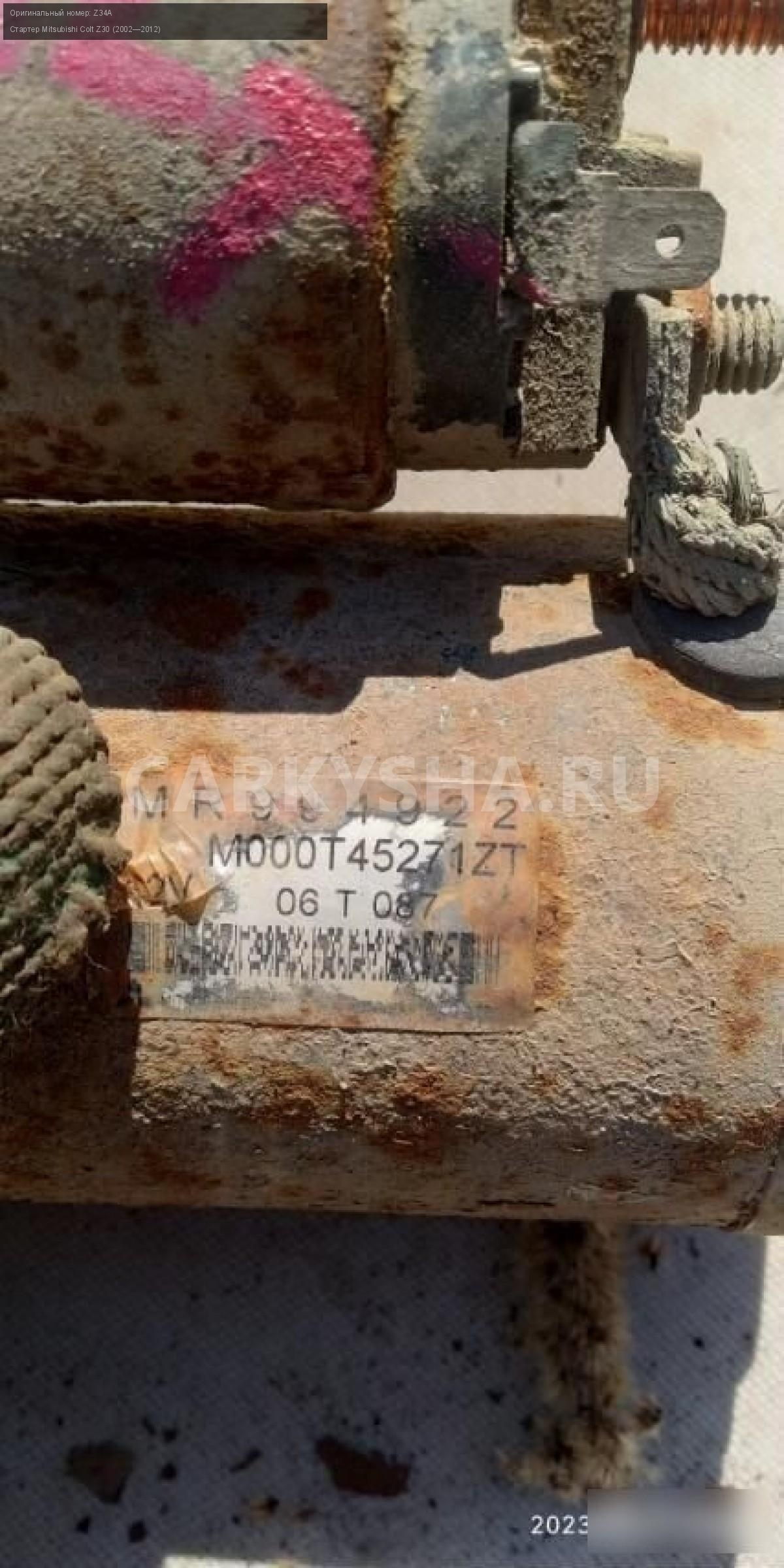 Mitsubishi colt 6 МКПП стартер\nАртикул: 223\n\nОриг. номер: Z34A\nПроизводитель: MITSUBISHI\nПримечание:Mitsubishi colt 6 МКПП,1.3 стартер.НАЛИЧИЕ ЗАПЧАСТИ УТОЧНИТЕ ПО ТЕЛЕФОНУ ИЛИ В СООБЩЕНИЯХ,б/у, а так же множество авто в разборе, работаем с регионами отправка тк, выкуп авто после дтп по всей России, отправка тк осуществляется после 100% оплаты, наложенным платежом не работаем, стоимость доставки не рассчитываем\n\nМарка: Mitsubishi\nМодель: Colt Z30 (2002—2012)\nКузов тип: Универсал\nОбъем: 1.3\nТопливо: Бензин\nКоробка: Механика\nСовместимости: Mitsubishi Colt Z30 (2002—2012) 1.3 MT (92 л.с.)\nСовместимость: