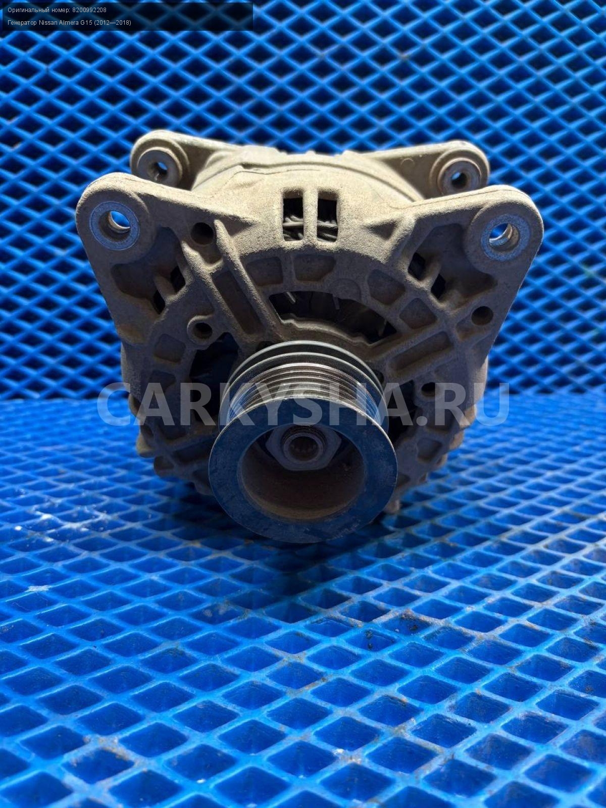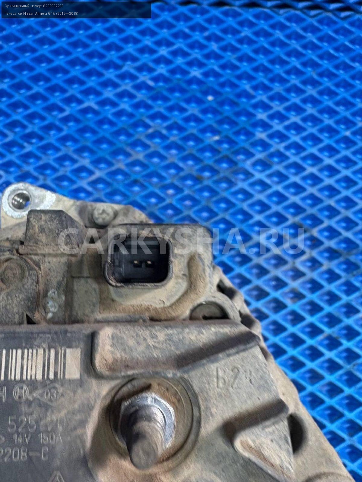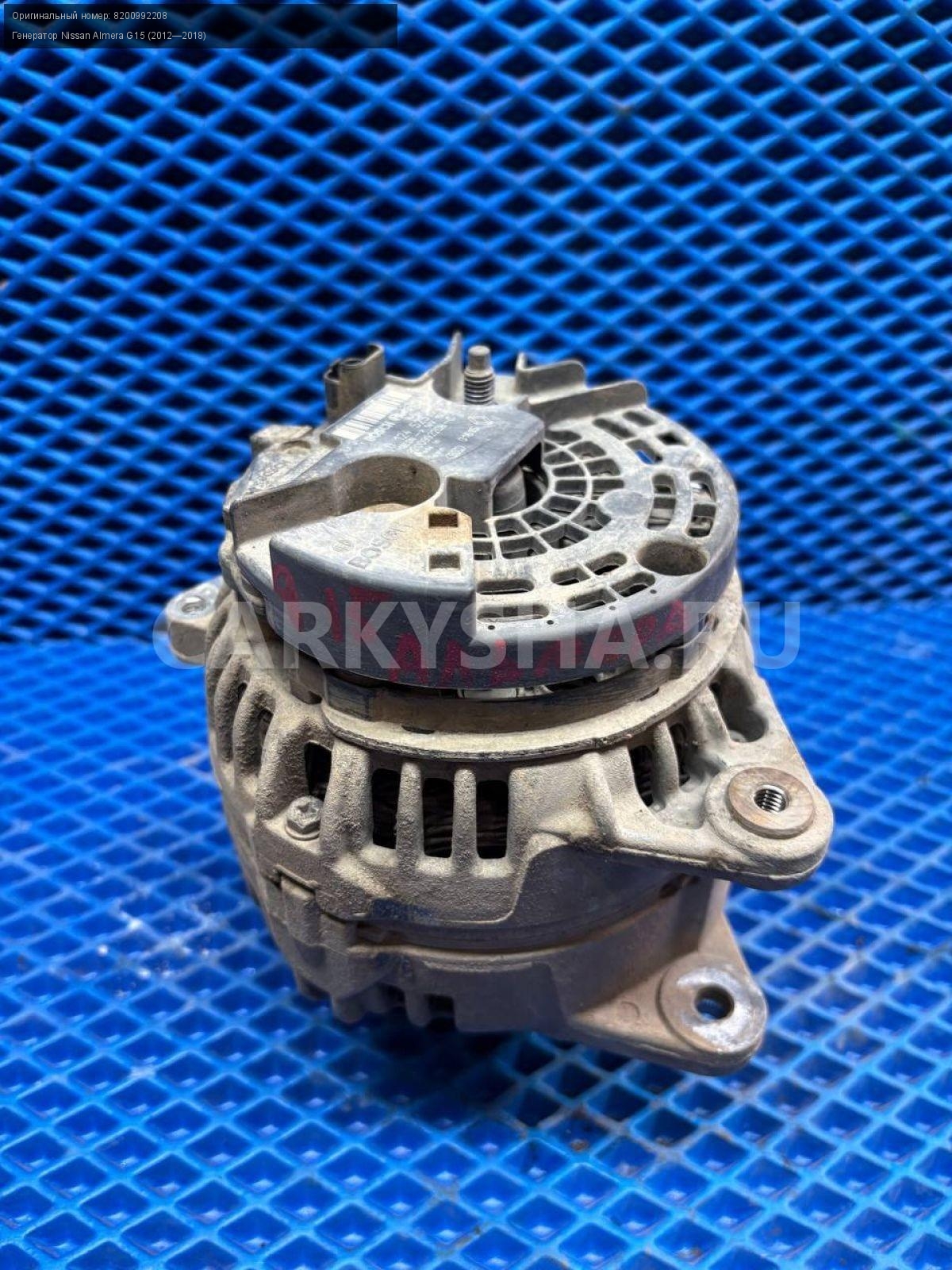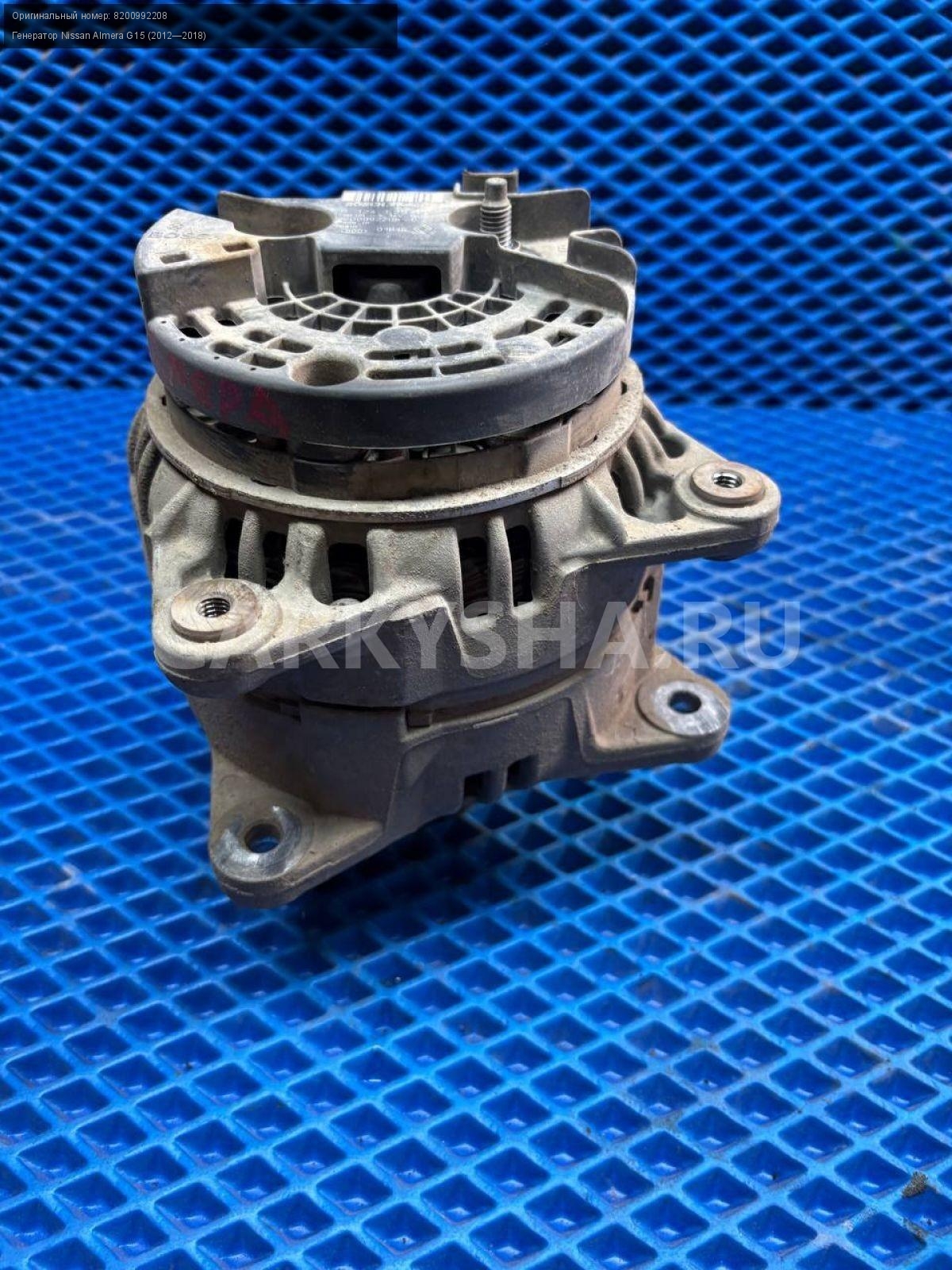 Nissan Almera G15, генератор 150а.\nАртикул: 8644\n\nОриг. номер: 8200992208\nПроизводитель: NISSAN\nПримечание:Ниссан Альмера G15, генератор 150а, б/у. \n\nМарка: Nissan\nМодель: Almera G15 (2012—2018)\nГод выпуска: 2015\nКузов тип: Седан\nДвигатель номер: K4MA490черный\nМодель двигателя: инжектор\nОбъем: 1.6\nТопливо: Бензин\nКоробка: Механика\nЦвет: Черный\nСовместимости: Nissan Almera G15 (2012—2018) 1.6 MT (102 л.с.)\nСовместимость: