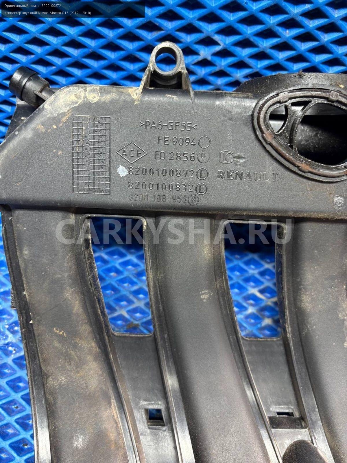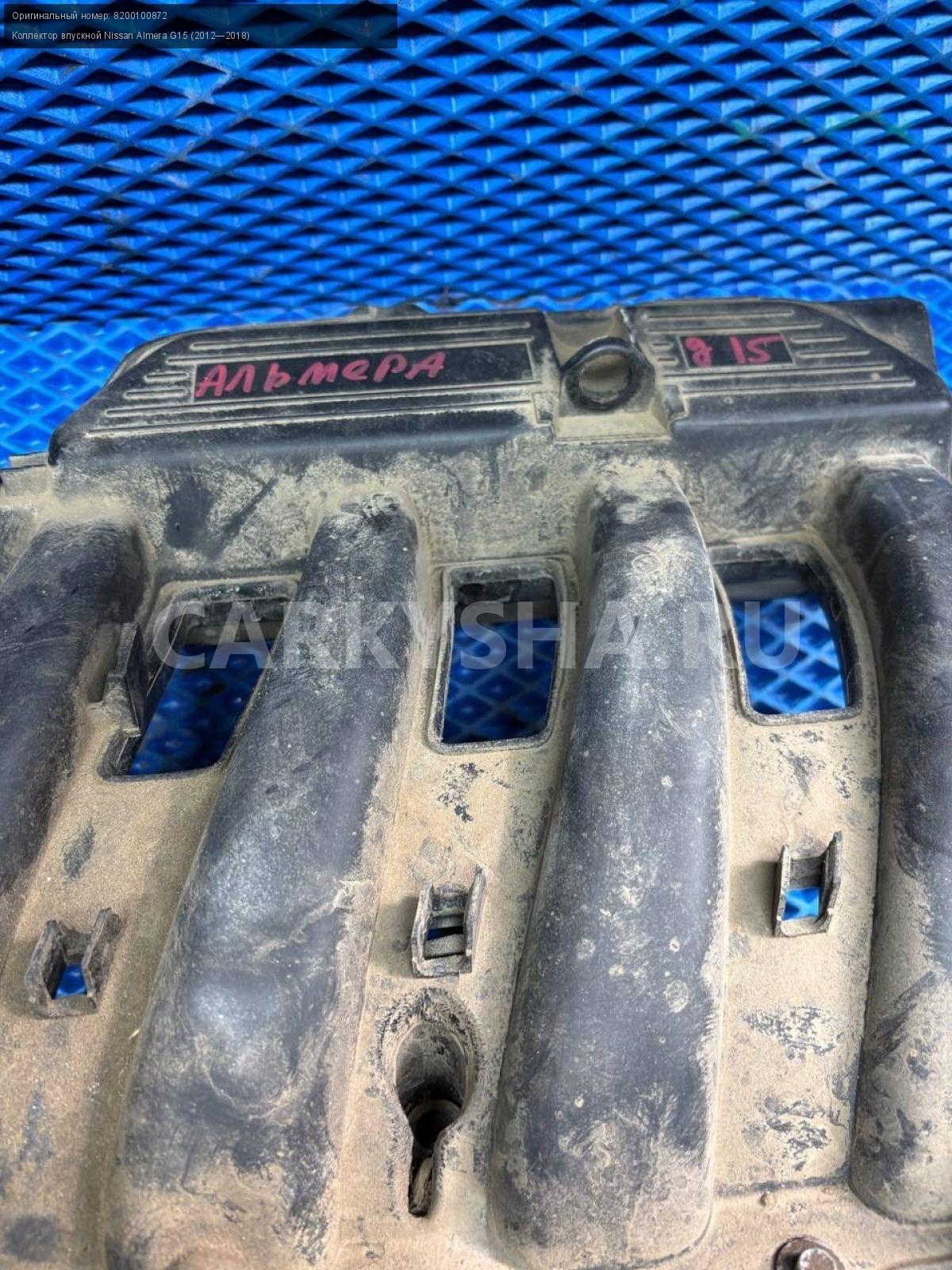 Nissan Almera G15, коллектор впускной обе части.\nАртикул: 8628\n\nОриг. номер: 8200100872\nПроизводитель: NISSAN\nПримечание:Ниссан Альмера G15, коллектор впускной, обе части , б/у. \n\nМарка: Nissan\nМодель: Almera G15 (2012—2018)\nГод выпуска: 2015\nКузов тип: Седан\nДвигатель номер: K4MA490черный\nМодель двигателя: инжектор\nОбъем: 1.6\nТопливо: Бензин\nКоробка: Механика\nЦвет: Черный\nСовместимости: Nissan Almera G15 (2012—2018) 1.6 MT (102 л.с.)\nСовместимость: