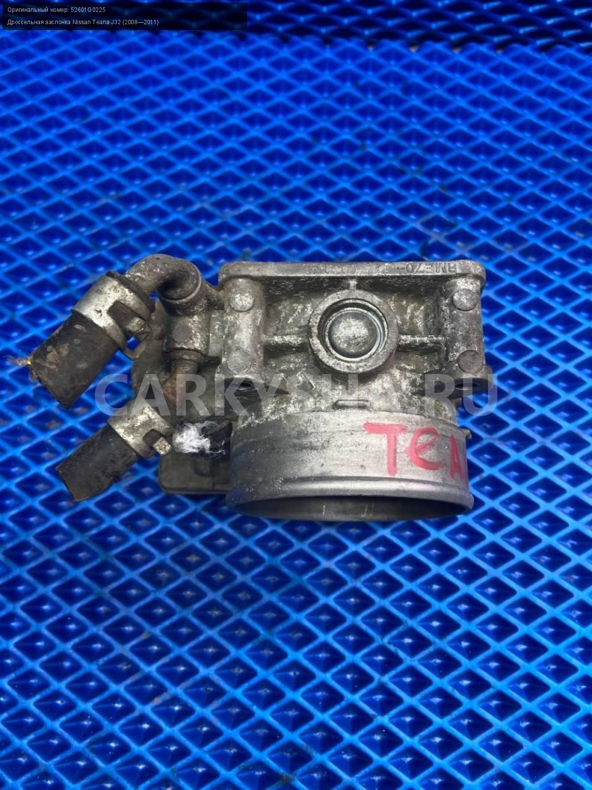 Nissan Teana J32 3.5 Дроссельная заслонка.\nАртикул: 7396\n\nОриг. номер: 52601G0225\nПроизводитель: Hitachi\nПримечание:Ниссан Теана J32 3.5, дроссельная заслонка, б/у. \n\nМарка: Nissan\nМодель: Teana J32 (2008—2011)\nГод выпуска: 2010\nКузов тип: Седан\nДвигатель номер: VQ35DE\nМодель двигателя: инжектор\nОбъем: 3.5\nТопливо: Бензин\nКоробка: Вариатор\nЦвет: B20-BLUEISH BLACK\nСовместимости: Nissan Teana J32 (2008—2011) 3.5 CVT (249 л.с.)\nСовместимость: