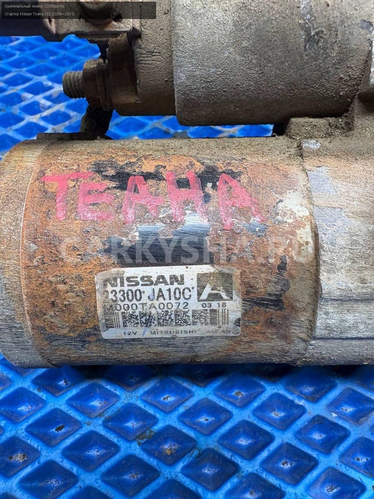 Nissan Teana J32 , 3,5 стартер.\nАртикул: 8629\n\nОриг. номер: 23300ja10c\nПроизводитель: NISSAN\nПримечание:Ниссан Теана J32, 3.5 Стартер , б/у. \n\nМарка: Nissan\nМодель: Teana J32 (2008—2011)\nГод выпуска: 2010\nКузов тип: Седан\nДвигатель номер: VQ35DE\nМодель двигателя: инжектор\nОбъем: 3.5\nТопливо: Бензин\nКоробка: Вариатор\nЦвет: B20-BLUEISH BLACK\nСовместимости: Nissan Teana J32 (2008—2011) 3.5 CVT (249 л.с.)\nСовместимость: