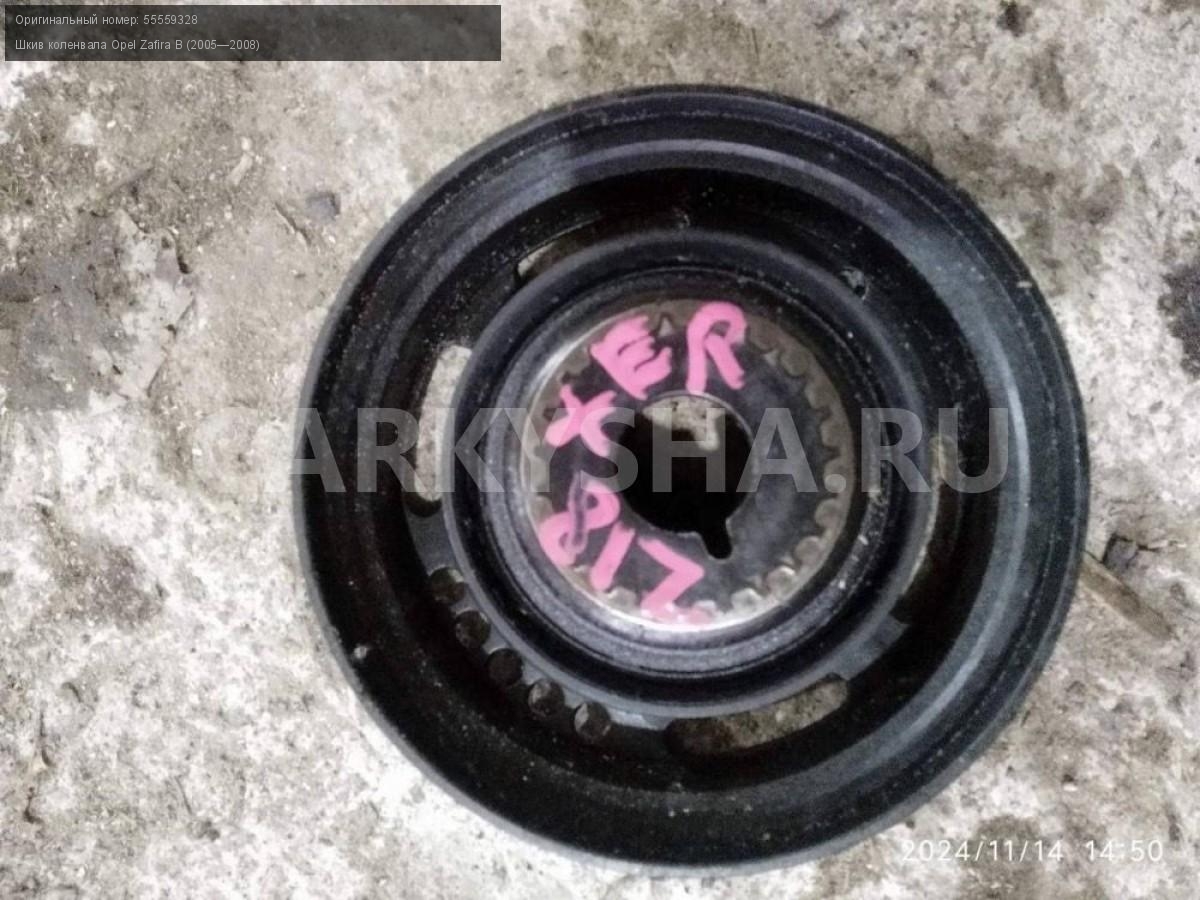 Opel Astra H Zafira B, шкив коленвала 1.8 Z18XER.\nАртикул: 6332\n\nОриг. номер: 55559328\nПроизводитель: OPEL\nПримечание:Опель Астра Н Зафира В, шкив коленвала 1.8 Z18XER, б/у. \n\nМарка: Opel\nМодель: Zafira B (2005—2008)\nСовместимости: Opel Astra H (2004—2007), Opel Zafira B (2005—2008)\nСовместимость: