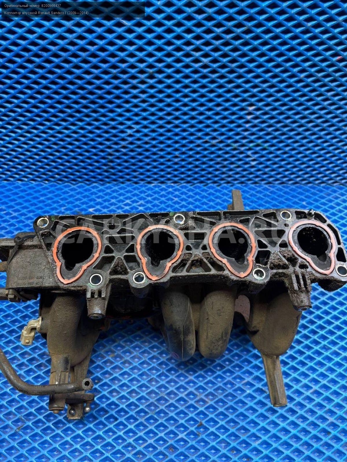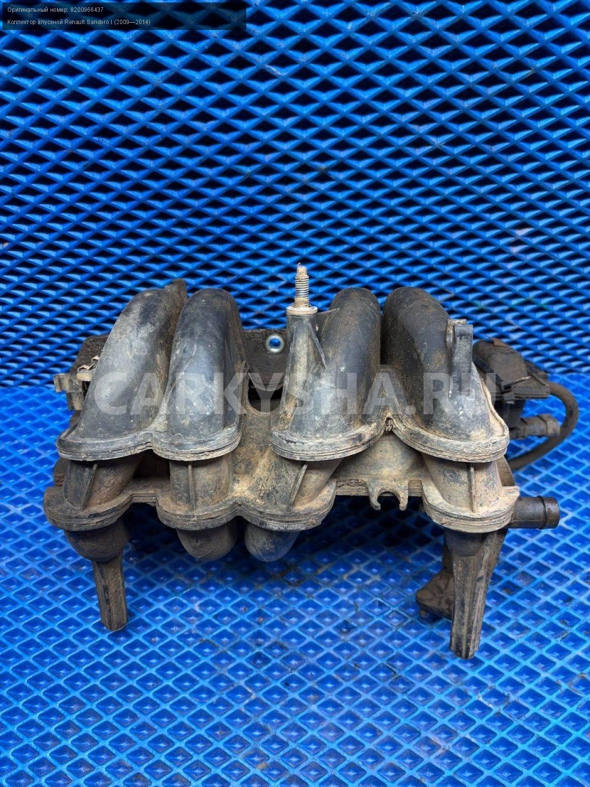 Renault Sandero I, коллектор впускной.\nАртикул: 8665\n\nОриг. номер: 8200966437\nПроизводитель: RENAULT\nПримечание:Рено Сандеро 1, коллектор впускной, б/у. \n\nМарка: Renault\nМодель: Sandero I (2009—2014)\nГод выпуска: 2013\nКузов тип: Хетчбэк\nДвигатель номер: K7MF710\nМодель двигателя: инжектор\nОбъем: 1.6\nТопливо: Бензин\nКоробка: Механика\nЦвет: Светло серый\nСовместимости: Renault Sandero I (2009—2014) 1.6 MT (84 л.с.)\nСовместимость:
