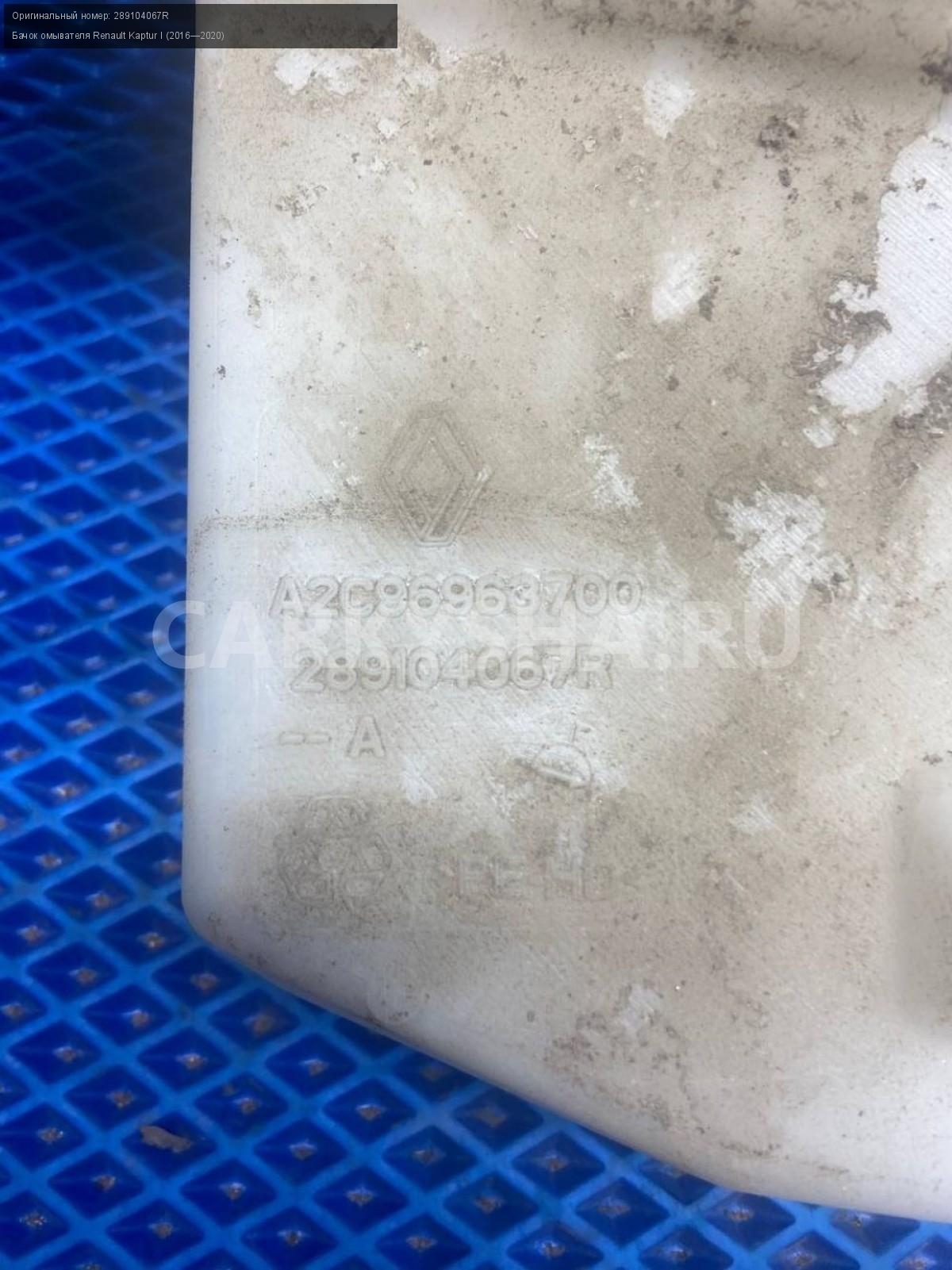 Renault Kaptur, бачок омывателя.\nАртикул: 7772\n\nОриг. номер: 289104067R\nПроизводитель: RENAULT\nПримечание:Рено Каптюр, бачок омывателя, б/у. \n\nМарка: Renault\nМодель: Kaptur I (2016—2020)\nГод выпуска: 2016\nКузов тип: Внедорожник\nДвигатель номер: H4M438\nМодель двигателя: инжектор\nОбъем: 1.6\nТопливо: Бензин\nКоробка: Механика\nЦвет: Белый\nСовместимости: Renault Kaptur I (2016—2020) 1.6 MT (114 л.с.)\nСовместимость: