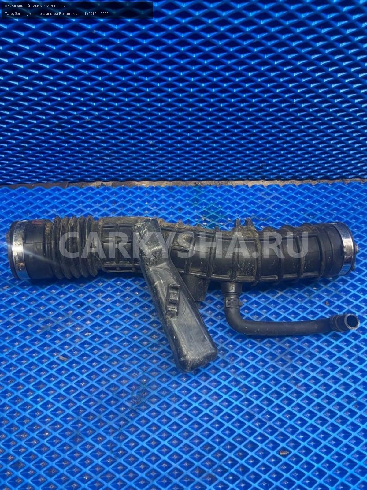 Renault Kaptur, патрубок воздушного фильтра.\nАртикул: 7771\n\nОриг. номер: 165788368R\nПроизводитель: RENAULT\nПримечание:Рено Каптюр, патрубок воздушного фильтра, бу. \n\nМарка: Renault\nМодель: Kaptur I (2016—2020)\nГод выпуска: 2016\nКузов тип: Внедорожник\nДвигатель номер: H4M438\nМодель двигателя: инжектор\nОбъем: 1.6\nТопливо: Бензин\nКоробка: Механика\nЦвет: Белый\nСовместимости: Renault Kaptur I (2016—2020) 1.6 MT (114 л.с.)\nСовместимость:
