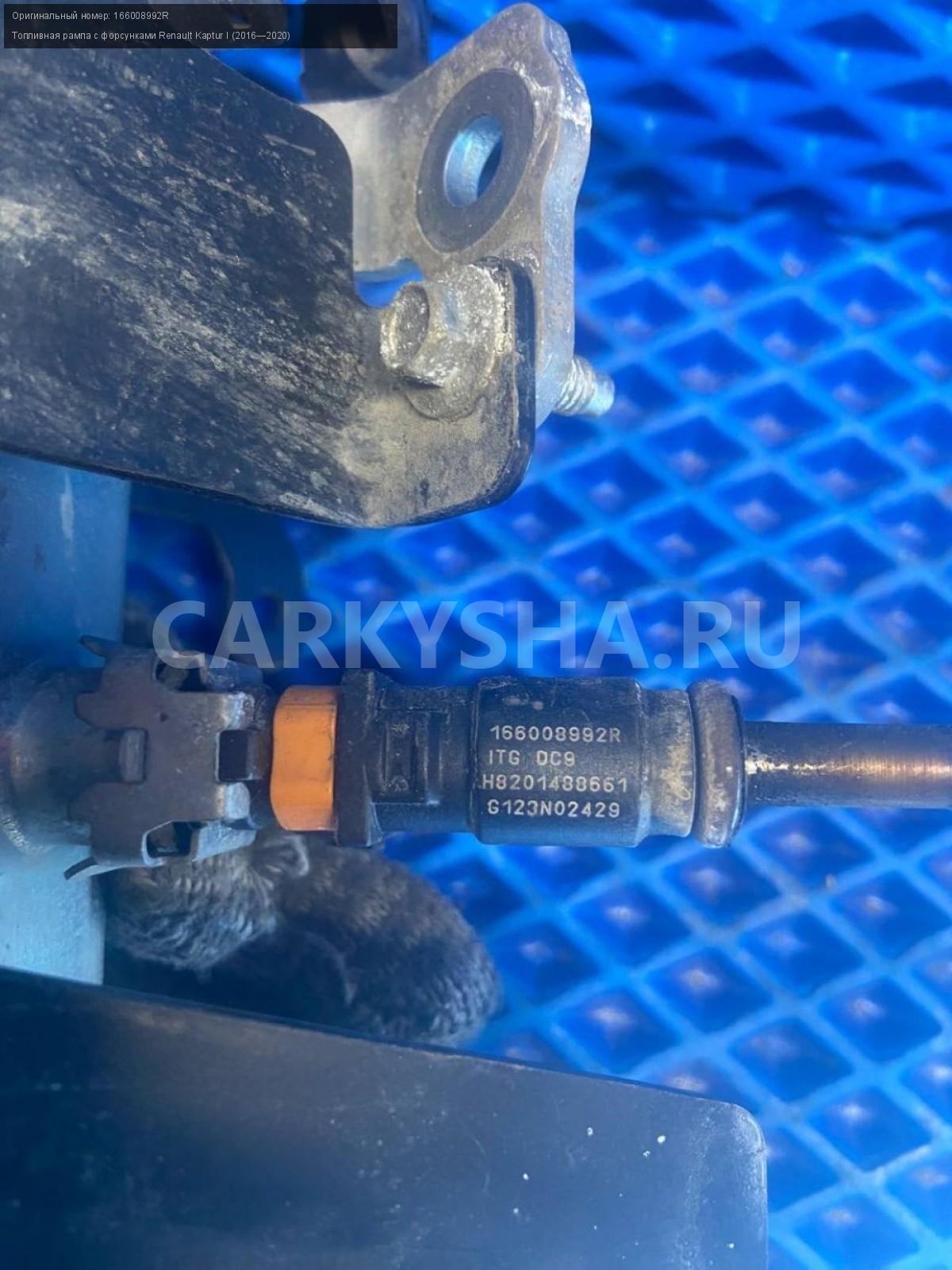 Renault Kaptur, топливная рампа с форсунками.\nАртикул: 7699\n\nОриг. номер: 166008992R\nПроизводитель: RENAULT\nПримечание:Рено Каптюр, топливная рампа с форсунками, б/у. \n\nМарка: Renault\nМодель: Kaptur I (2016—2020)\nГод выпуска: 2016\nКузов тип: Внедорожник\nДвигатель номер: H4M438\nМодель двигателя: инжектор\nОбъем: 1.6\nТопливо: Бензин\nКоробка: Механика\nЦвет: Белый\nСовместимости: Renault Kaptur I (2016—2020) 1.6 MT (114 л.с.)\nСовместимость: