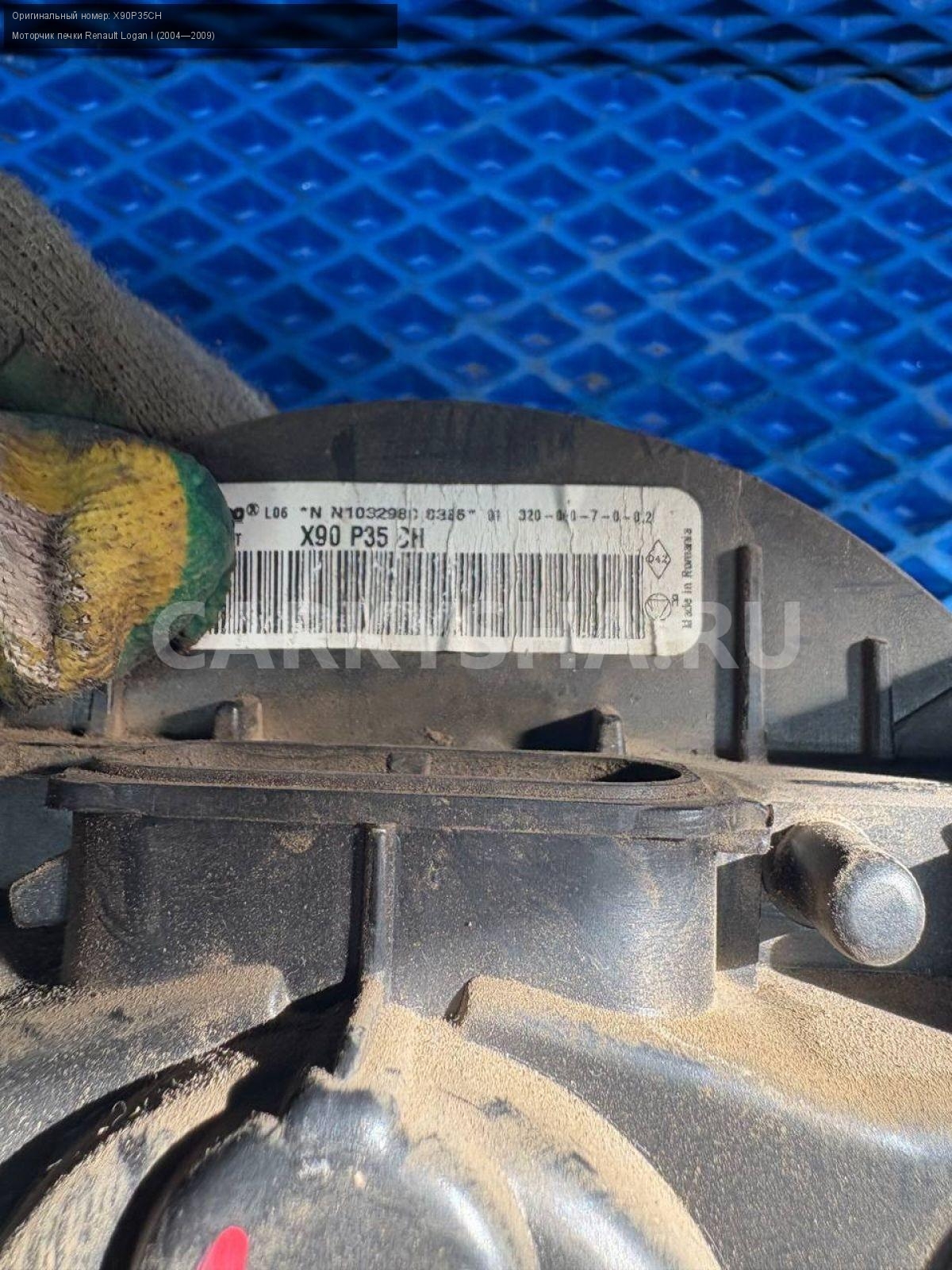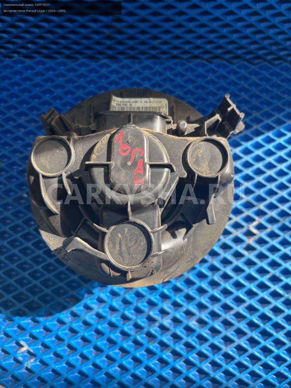 Renault Logan I , моторчик печки.\nАртикул: 8611\n\nОриг. номер: X90P35CH\nПроизводитель: RENAULT\nПримечание:Рено Логан 1, моторчик печки, моторчик отопителя, б/у. \n\nМарка: Renault\nМодель: Logan I (2004—2009)\nГод выпуска: 2007\nКузов тип: Седан\nДвигатель номер: K7JA710\nМодель двигателя: инжектор\nОбъем: 1.4\nТопливо: Бензин\nКоробка: Механика\nЦвет: Синий\nСовместимости: Renault Logan I (2004—2009) 1.4 MT (75 л.с.)\nСовместимость: