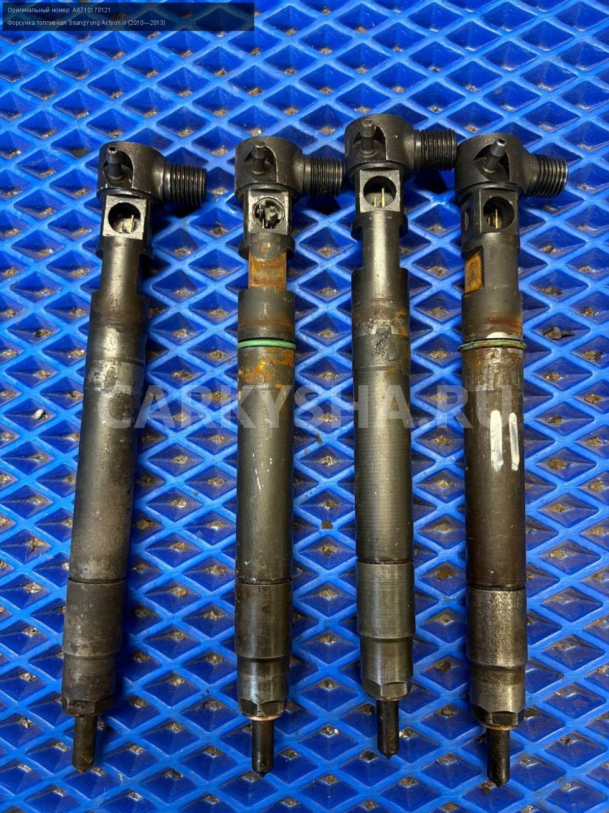 SsangYong Actyon New форсунки топливные 2.0 D20DTF\nАртикул: 9706\n\nОриг. номер: A6710170121\nПроизводитель: SSANG YONG\nПримечание:Ссаненг Актион Нью , форсунки топливные 2.0 турбодизель D20DTF, цена за штуку, б/у. \n\nМарка: SsangYong\nМодель: Actyon II (2010—2013)\nГод выпуска: 2011\nКузов тип: Внедорожник\nДвигатель номер: D20DTF\nМодель двигателя: турбо-дизель\nОбъем: 2.0\nТопливо: Дизель\nКоробка: Автомат\nЦвет: Серебристый\nСовместимости: SsangYong Actyon II (2010—2013) 2.0 D AT (149 л.с.)\nСовместимость: