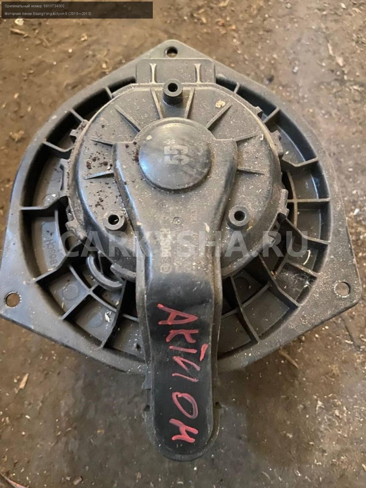 SsangYong Actyon II , моторчик печки\nАртикул: 3257\n\nОриг. номер: 6811734000\nПроизводитель: SSANG YONG\nПримечание:Саненг Актион 2, new, моторчик печки , б/у\n\nМарка: SsangYong\nМодель: Actyon II (2010—2013)\nСовместимости: SsangYong Actyon II (2010—2013) 2.0 AT (149 л.с.)\nСовместимость: