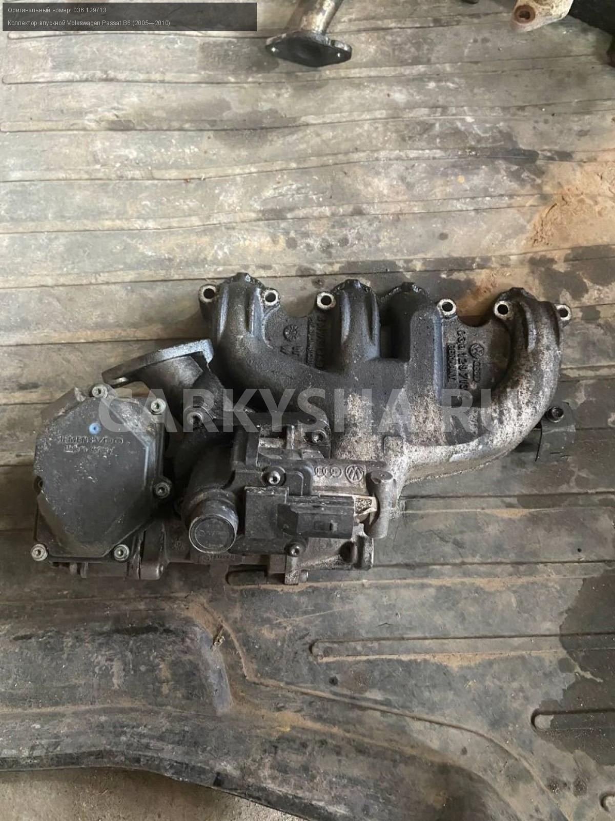 Volkswagen Passat B6, коллектор впускной.\nАртикул: 4116\n\nОриг. номер: 036 129713\nПроизводитель: VAG\nПримечание:Фольцваген Пассат В5, 2.0 турбодизель, коллектор впускной ВМР, бу. \n\nМарка: Volkswagen\nМодель: Passat B6 (2005—2010)\nГод выпуска: 2010\nКузов тип: Универсал\nДвигатель номер: Bmp\nМодель двигателя: турбо-дизель\nОбъем: 2.0\nТопливо: Дизель\nКоробка: Робот\nЦвет: Серебристый\nСовместимости: Volkswagen Passat B6 (2005—2010) 2.0 TDI DSG (140 л.с.)\nСовместимость: