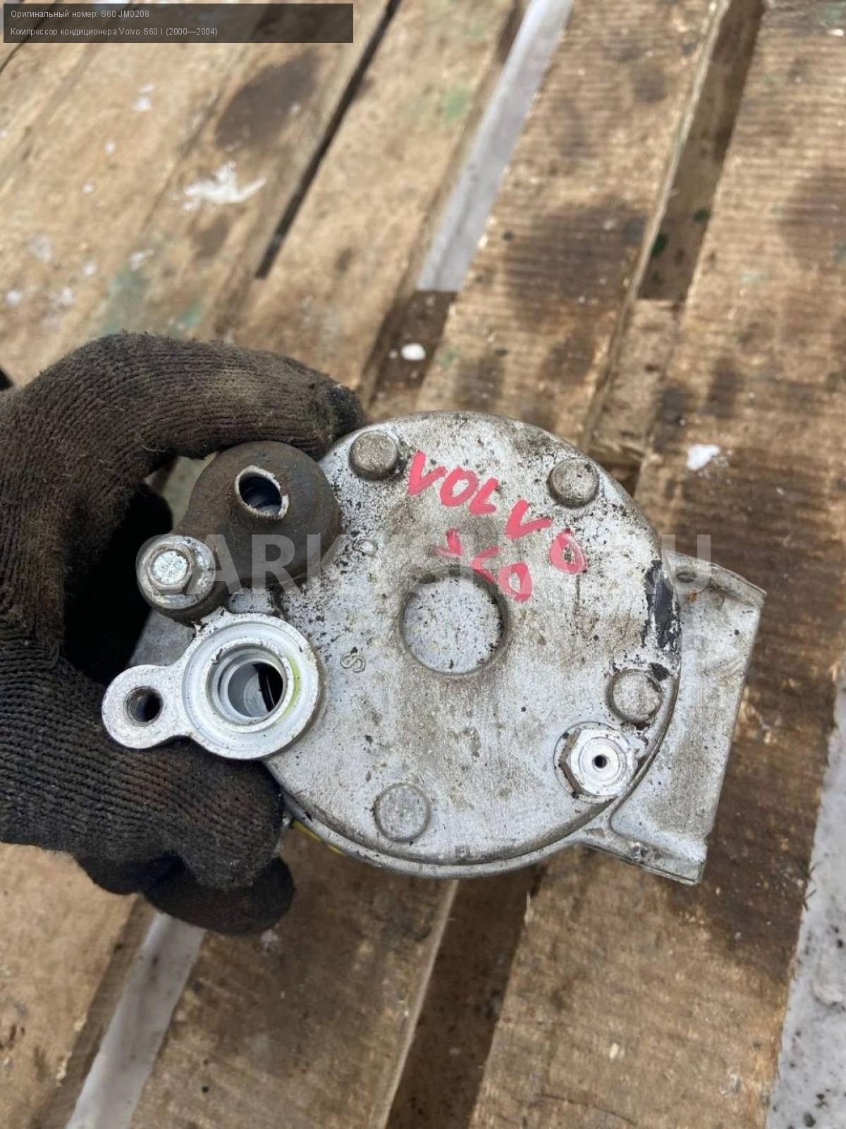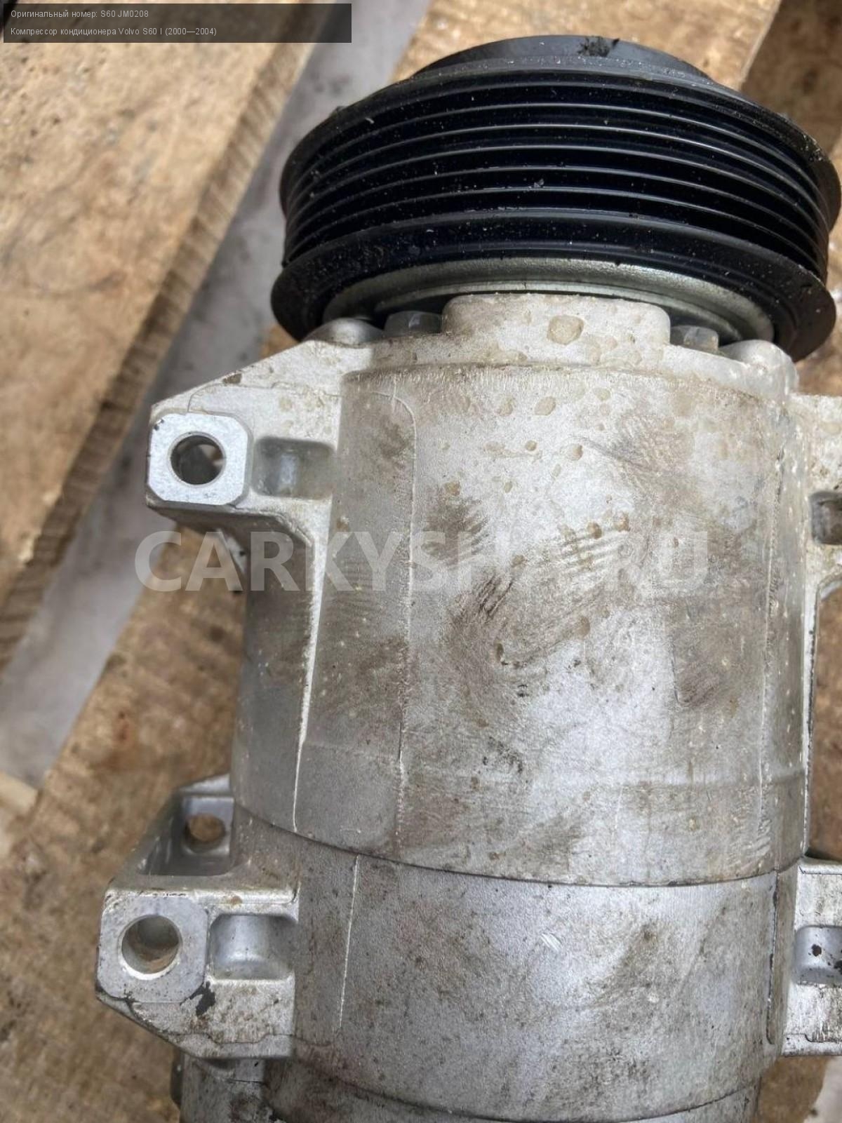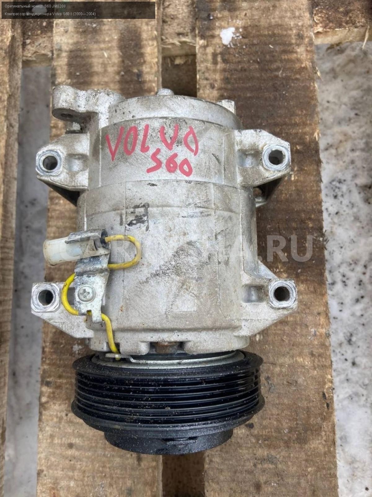 Volvo S60, компрессор кондиционера.\nАртикул: 6920\n\nОриг. номер: S60 JM0208\nПроизводитель: VOLVO\nПримечание:Вольво S60, компрессор кондиционера, не оригинальный, б/у состояние нового. \n\nМарка: Volvo\nМодель: S60 I (2000—2004)\nГод выпуска: 2003\nКузов тип: Седан\nДвигатель номер: B5244S\nМодель двигателя: инжектор\nОбъем: 2.4\nТопливо: Бензин\nКоробка: Автомат\nЦвет: Черный\nСовместимости: Volvo S60 I (2000—2004) 2.4 AT (170 л.с.)\nСовместимость: