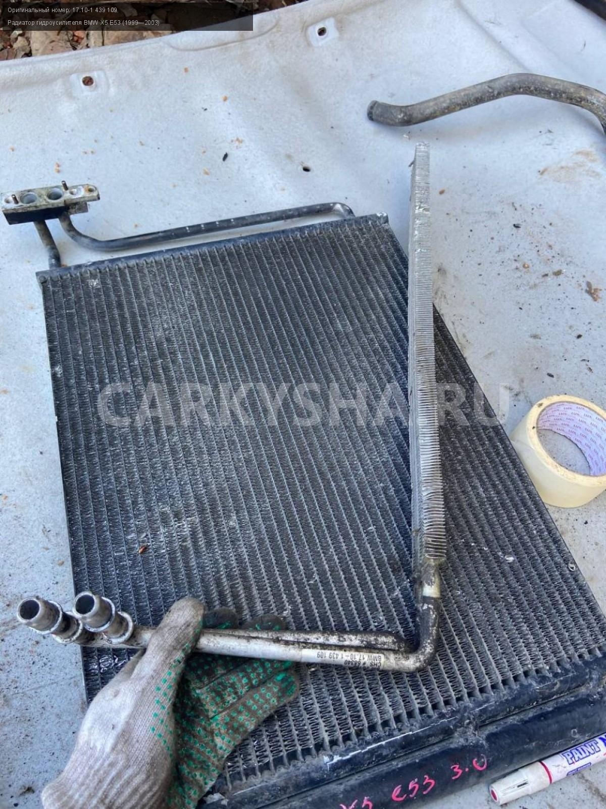BMW X5 E53, радиатор гидроусилителя\nАртикул: 4965\n\nОриг. номер: 17.10-1 439 109\nПроизводитель: BMW\nПримечание:БМВ Х5 Е53, генератор гидроусилителя , б/у. \n\nМарка: BMW\nМодель: X5 E53 (1999—2003)\nГод выпуска: 2001\nКузов тип: Внедорожник\nДвигатель номер: M54B30\nМодель двигателя: инжектор\nОбъем: 3.0\nТопливо: Бензин\nКоробка: Автомат\nЦвет: Черный\nСовместимости: BMW X5 E53 (1999—2003) 3.0i 3.0 AT (231 л.с.)\nСовместимость: