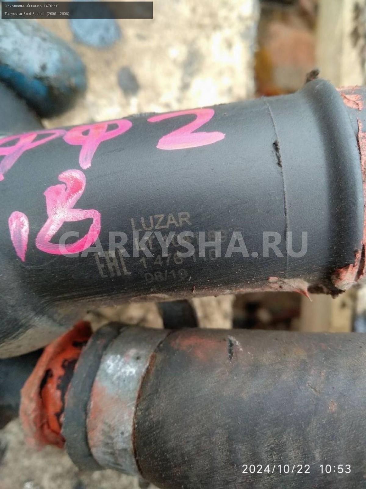 Ford Focus II 1.8 , термостат.\nАртикул: 6035\n\nОриг. номер: 1476110\nПроизводитель: Luzar\nПримечание:Форд Фокус 2 , 1.8 Термостат, Luzar, б/у. \n\nМарка: Ford\nМодель: Focus II (2005—2008)\nГод выпуска: 2006\nКузов тип: Универсал\nДвигатель номер: QQDB\nМодель двигателя: инжектор\nОбъем: 1.8\nТопливо: Бензин\nКоробка: Механика\nЦвет: Черный\nСовместимости: Ford Focus II (2005—2008) 1.8 MT (125 л.с.)\nСовместимость:
