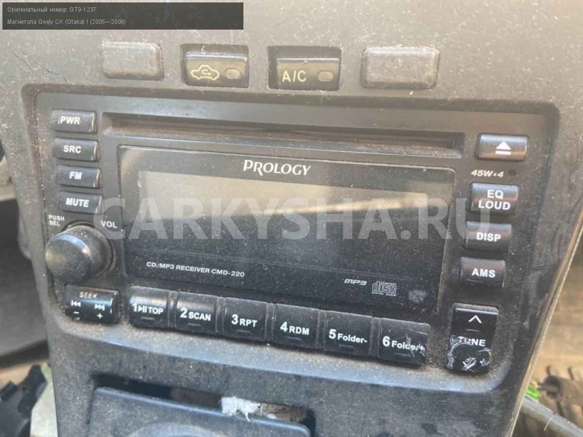 Geely CK (Otaka) I, магнитола\nАртикул: 2803\n\nОриг. номер: GT9-1237\nПроизводитель: PROLOGY\nПримечание:Джилли СК Отака 1, магнитола , б/у\n\nМарка: Geely\nМодель: CK (Otaka) I (2005—2008)\nГод выпуска: 2008\nКузов тип: Седан\nДвигатель номер: MR479QA\nМодель двигателя: инжектор\nОбъем: 1.5\nТопливо: Бензин\nКоробка: Механика\nЦвет: Черный\nСовместимости: Geely CK (Otaka) I (2005—2008) 1.5 MT (94 л.с.)\nСовместимость: