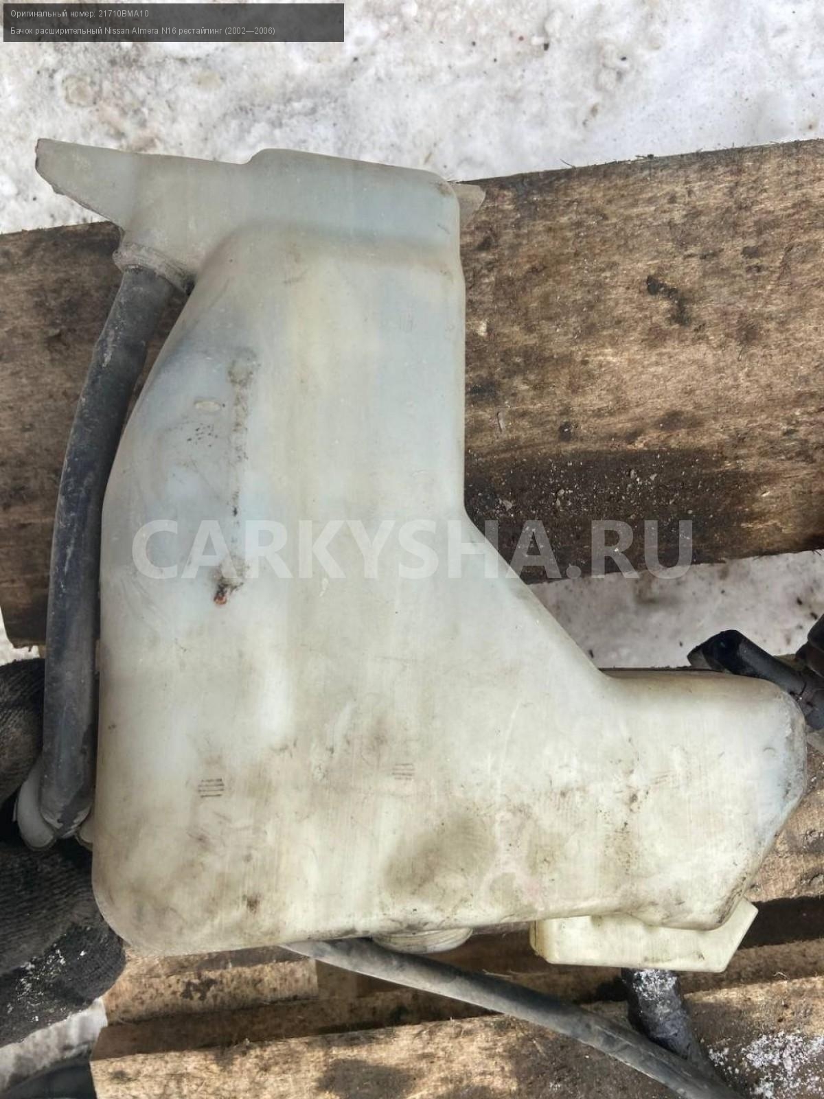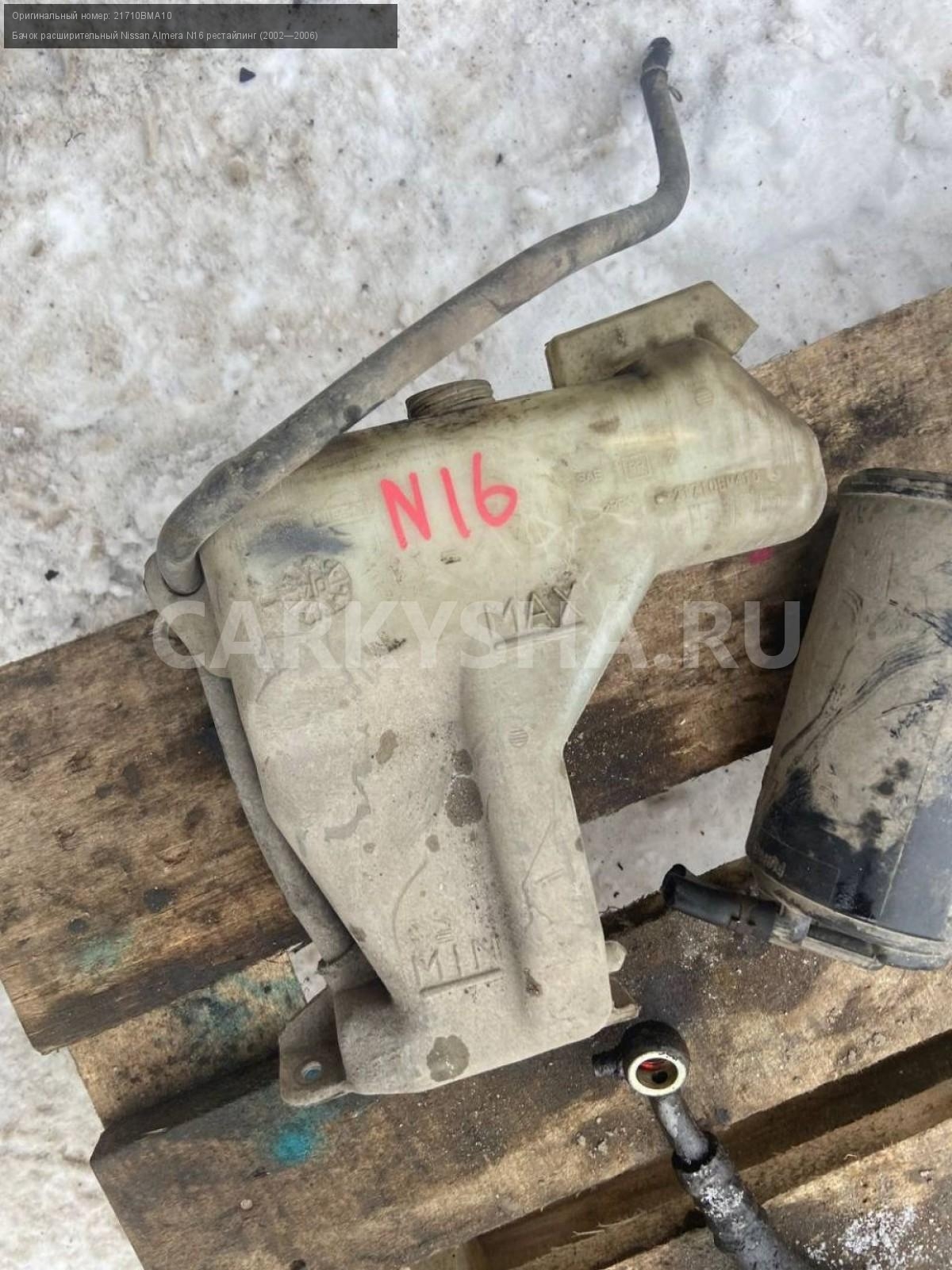 Nissan Almera N16, бачок расширительный.\nАртикул: 7094\n\nОриг. номер: 21710BMA10\nПроизводитель: NISSAN\nПримечание:Ниссан Альмера N16, бачок расширительный, б/у. \n\nМарка: Nissan\nМодель: Almera N16 рестайлинг (2002—2006)\nГод выпуска: 2004\nКузов тип: Хетчбэк\nДвигатель номер: QG18DE\nМодель двигателя: инжектор\nОбъем: 1.8\nТопливо: Бензин\nКоробка: Механика\nЦвет: Черный\nСовместимости: Nissan Almera N16 рестайлинг (2002—2006) 1.8 MT (116 л.с.)\nСовместимость: