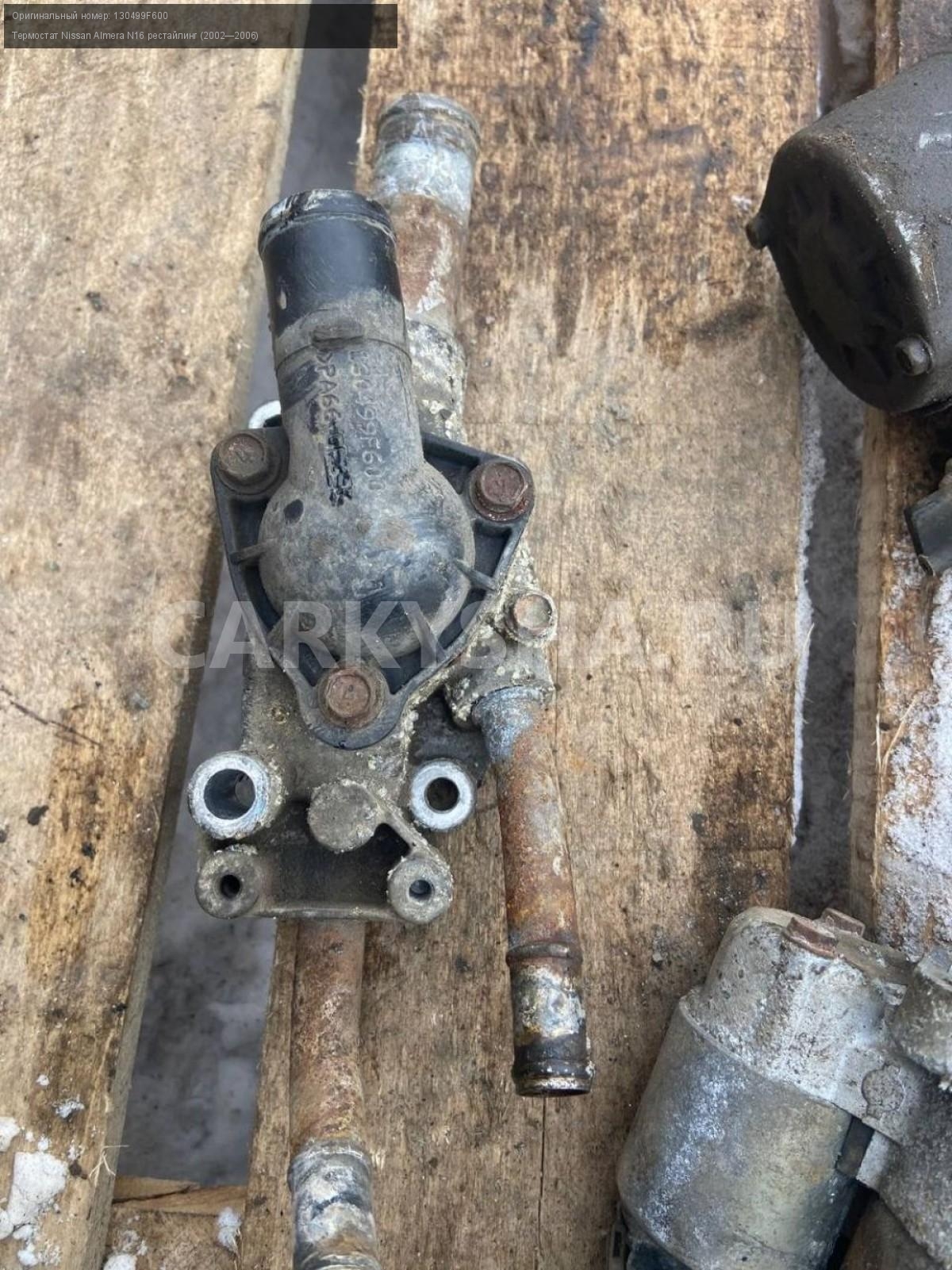 Nissan Almera N16, термостат.\nАртикул: 7097\n\nОриг. номер: 130499F600\nПроизводитель: NISSAN\nПримечание:Ниссан Альмера N16, термостат , б/у. \n\nМарка: Nissan\nМодель: Almera N16 рестайлинг (2002—2006)\nГод выпуска: 2004\nКузов тип: Хетчбэк\nДвигатель номер: QG18DE\nМодель двигателя: инжектор\nОбъем: 1.8\nТопливо: Бензин\nКоробка: Механика\nЦвет: Черный\nСовместимости: Nissan Almera N16 рестайлинг (2002—2006) 1.8 MT (116 л.с.)\nСовместимость: