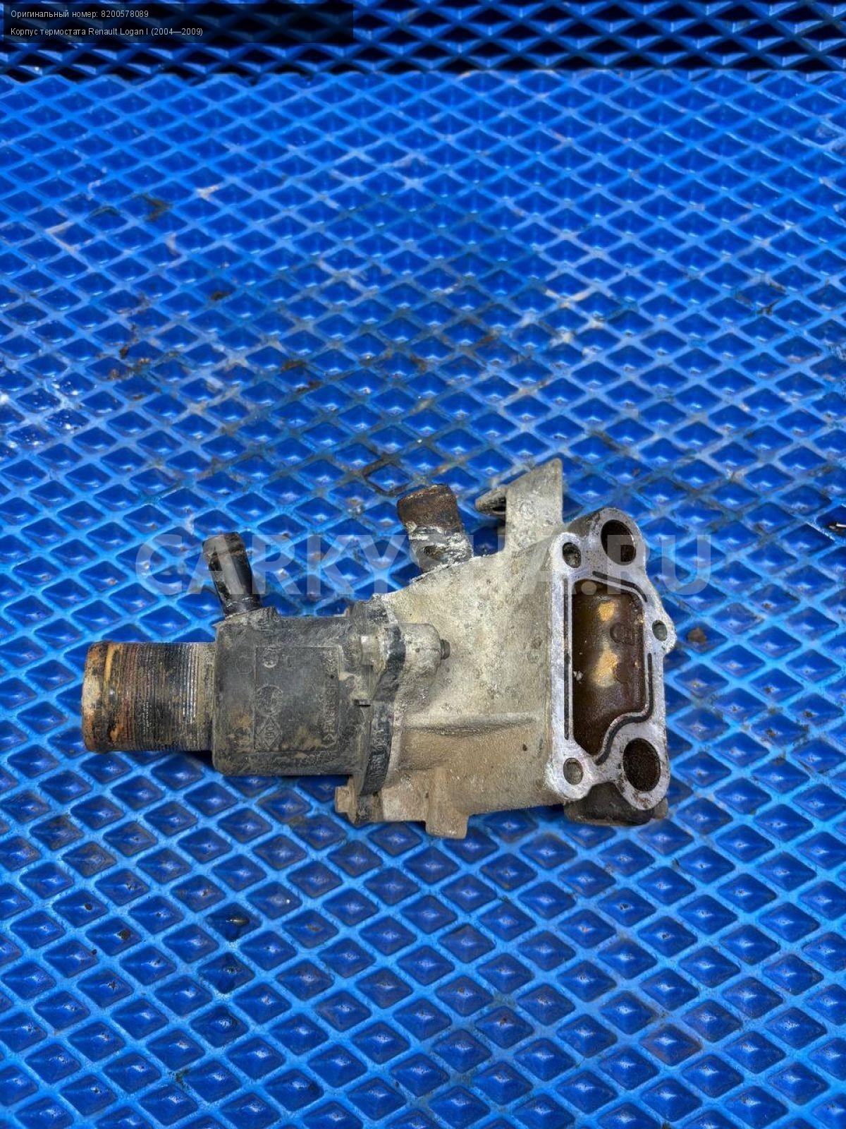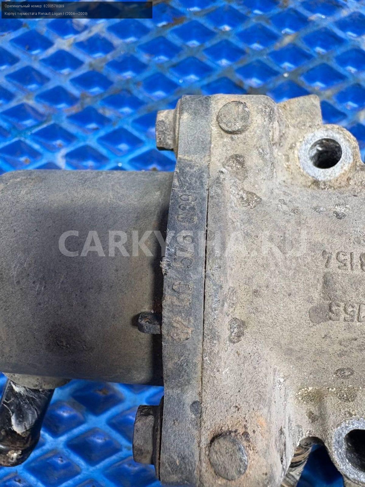 Renault Logan I, корпус термостата.\nАртикул: 8657\n\nОриг. номер: 8200578089\nПроизводитель: RENAULT\nПримечание:Рено Логан 1, корпус термостата, термостат в сборе, б/у. \n\nМарка: Renault\nМодель: Logan I (2004—2009)\nГод выпуска: 2007\nКузов тип: Седан\nДвигатель номер: K7JA710\nМодель двигателя: инжектор\nОбъем: 1.4\nТопливо: Бензин\nКоробка: Механика\nЦвет: Синий\nСовместимости: Renault Logan I (2004—2009) 1.4 MT (75 л.с.)\nСовместимость: