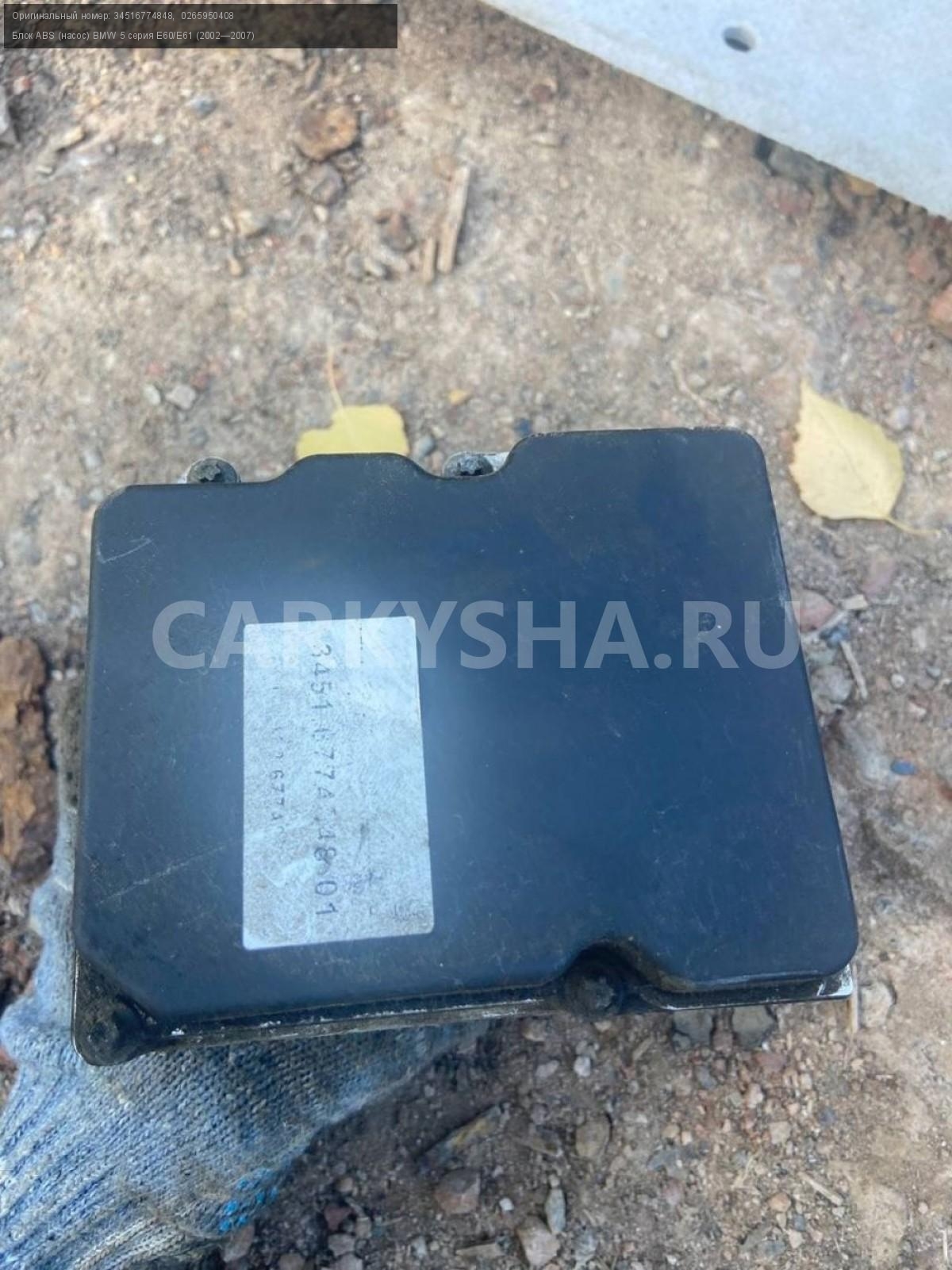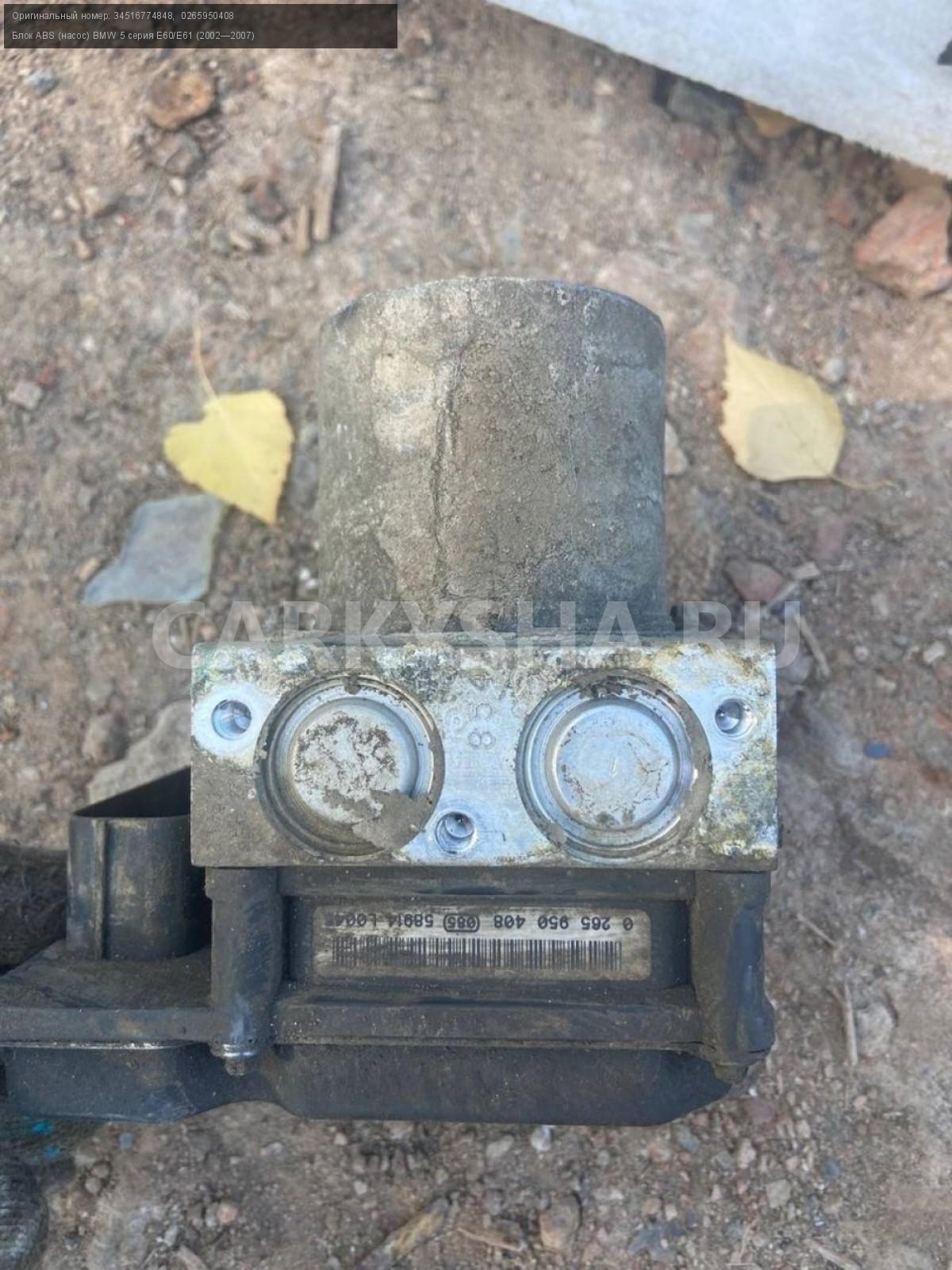 BMW 5 серия E60, блок abs\nАртикул: 3168\n\nОриг. номер: 34516774848\nНомера замен: 0265950408\nПроизводитель: BMW\nПримечание:БМВ 5 серия E60, блок abs, б/у\n\nМарка: BMW\nМодель: 5 серия E60/E61 (2002—2007)\nГод выпуска: 2005\nКузов тип: Седан\nДвигатель номер: N52B25\nМодель двигателя: инжектор\nОбъем: 2.5\nТопливо: Бензин\nКоробка: Автомат\nЦвет: Черный\nСовместимости: BMW 5 серия E60/E61 (2002—2007) 525i 2.5 AT (218 л.с.)\nСовместимость: