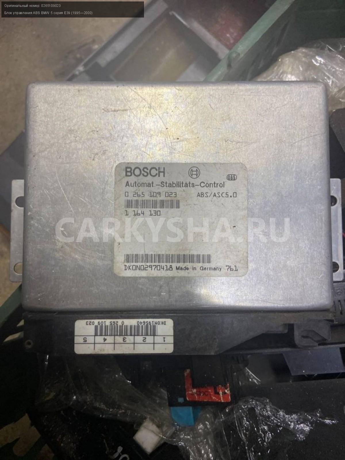BMW 5 серия E39 , блок управления ABS\nАртикул: 2725\n\nОриг. номер: 0265109023\nПроизводитель: BMW\nПримечание:БМВ 5 Е39, блок управления АБС, б/у\n\nМарка: BMW\nМодель: 5 серия E39 (1995—2000)\nГод выпуска: 1999\nКузов тип: Седан\nДвигатель номер: M54B25\nМодель двигателя: инжектор\nОбъем: 2.5\nТопливо: Бензин\nКоробка: Автомат\nЦвет: Черный\nСовместимости: BMW 5 серия E39 (1995—2000) 523i 2.5 AT (170 л.с.)\nСовместимость: