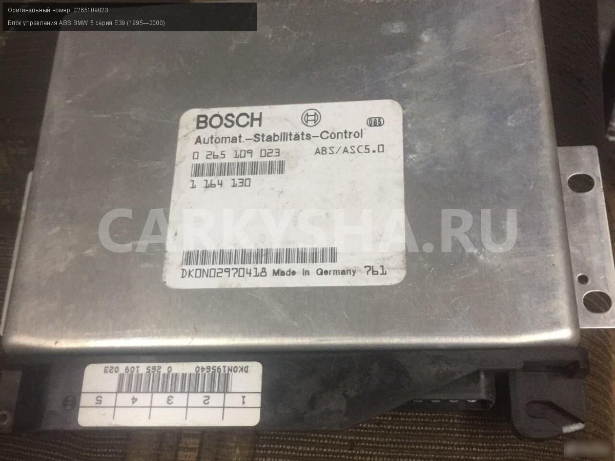 Бмв Е39 блок управления ABS\nАртикул: 2367\n\nОриг. номер: 0265109023\nПроизводитель: Bosch\nПримечание:Бмв е39 блок управления ABS, оригинал бу, гарантия до 14 дней, а так же множество авто в разборе, работаем с регионами отправка тк, выкуп авто после дтп по всей России\n\nМарка: BMW\nМодель: 5 серия E39 (1995—2000)\nСовместимости: BMW 5 серия E39 (1995—2000)\nСовместимость:
