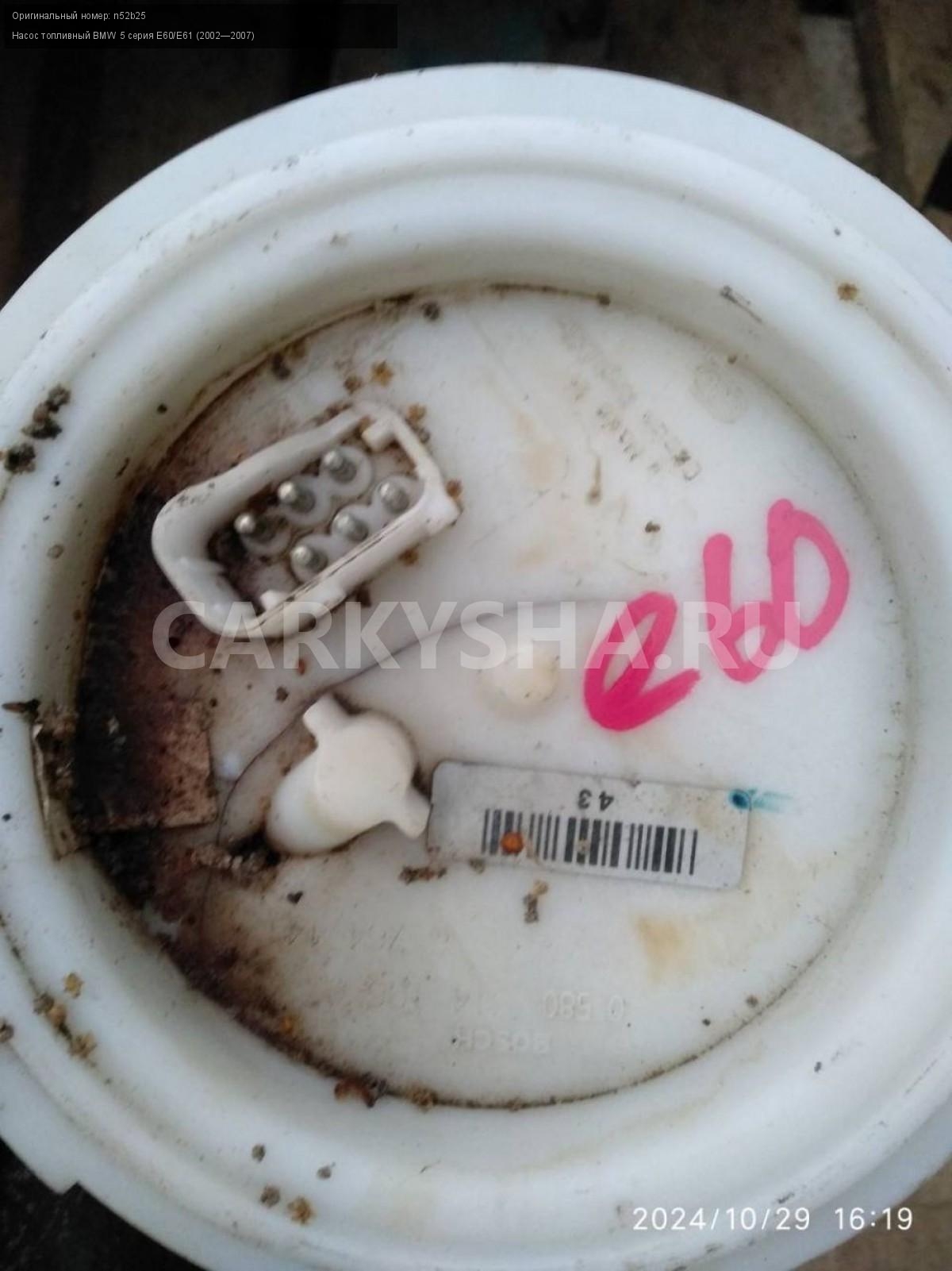 BMW 5 серия E60, насос топливный и насос перекачки\nАртикул: 6171\n\nОриг. номер: n52b25\nПроизводитель: BMW\nПримечание:Бмв 5 серии е60 насос топливный и насос перекачки n52b25 оба с дефектом цена за оба, б/у. \n\nМарка: BMW\nМодель: 5 серия E60/E61 (2002—2007)\nГод выпуска: 2005\nКузов тип: Седан\nДвигатель номер: N52B25\nМодель двигателя: инжектор\nОбъем: 2.5\nТопливо: Бензин\nКоробка: Автомат\nЦвет: Черный\nСовместимости: BMW 5 серия E60/E61 (2002—2007) 525i 2.5 AT (218 л.с.)\nСовместимость: