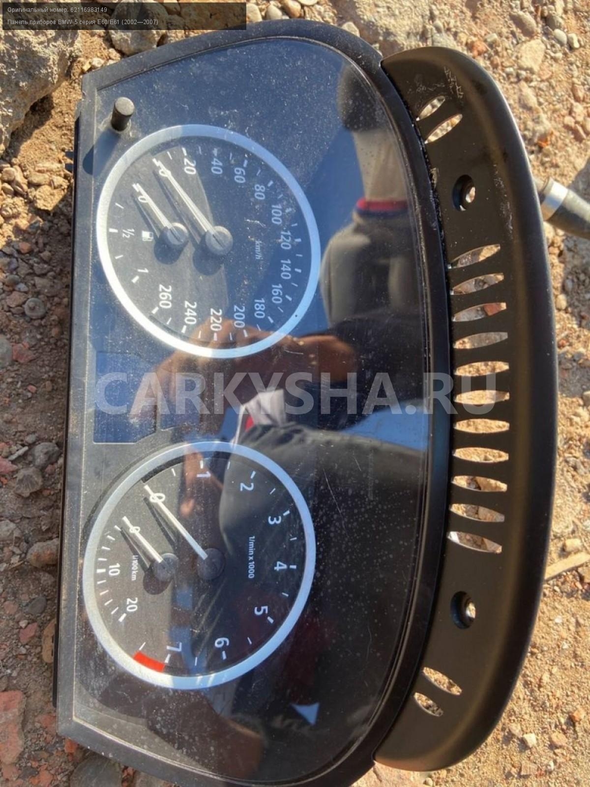 BMW 5 серия E60, щиток приборов\nАртикул: 3187\n\nОриг. номер: 62116983149\nПроизводитель: BMW\nПримечание:БМВ 5 серия E60, щиток приборов, б/у\n\nМарка: BMW\nМодель: 5 серия E60/E61 (2002—2007)\nГод выпуска: 2005\nКузов тип: Седан\nДвигатель номер: N52B25\nМодель двигателя: инжектор\nОбъем: 2.5\nТопливо: Бензин\nКоробка: Автомат\nЦвет: Черный\nПеред/Зад: Перед\nСовместимости: BMW 5 серия E60/E61 (2002—2007) 525i 2.5 AT (218 л.с.)\nСовместимость: