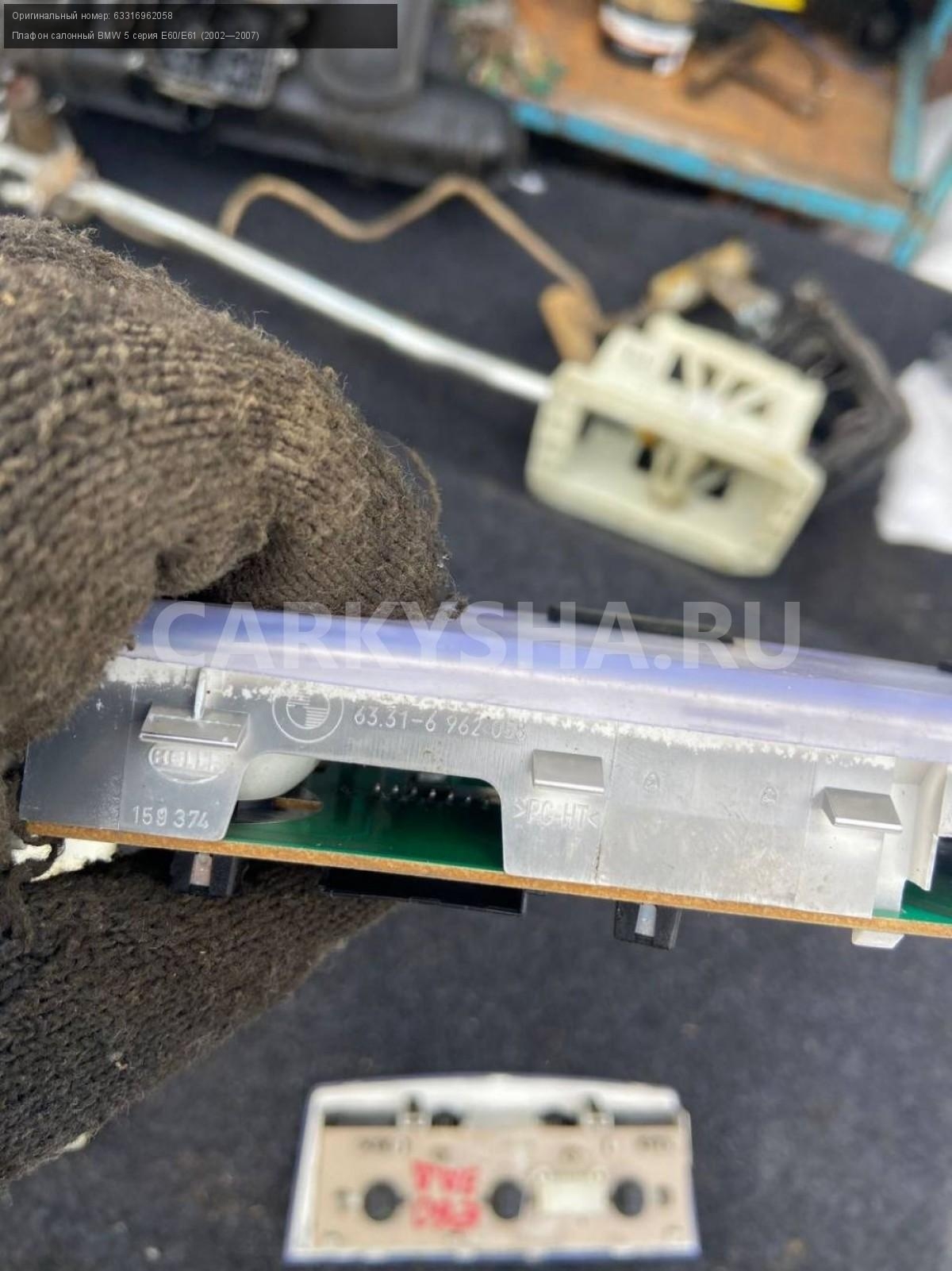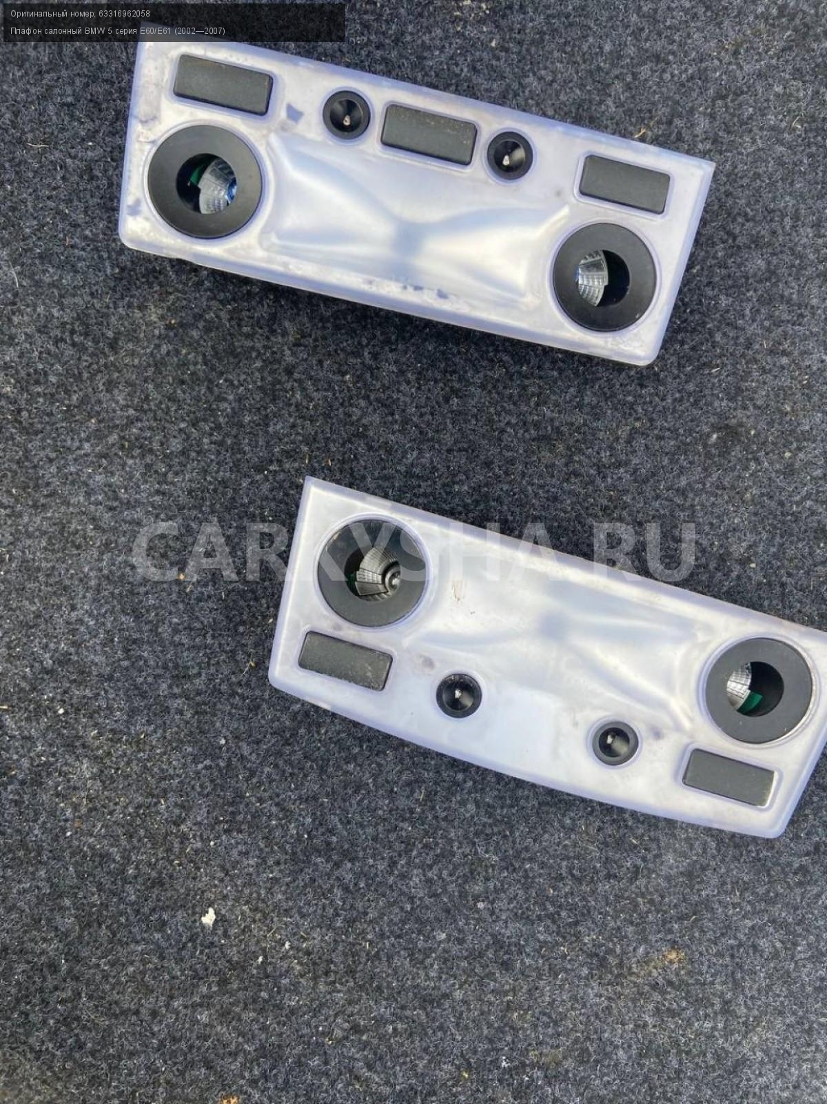 BMW 5 серия E60, Плафон салонный.\nАртикул: 6855\n\nОриг. номер: 63316962058\nПроизводитель: BMW\nПримечание:Бмв 5 серии е60 , плафон освещения салона, на одном не держится стекло, цена за пару, б/у. \n\nМарка: BMW\nМодель: 5 серия E60/E61 (2002—2007)\nГод выпуска: 2005\nКузов тип: Седан\nДвигатель номер: N52B25\nМодель двигателя: инжектор\nОбъем: 2.5\nТопливо: Бензин\nКоробка: Автомат\nЦвет: Черный\nСовместимости: BMW 5 серия E60/E61 (2002—2007) 525i 2.5 AT (218 л.с.)\nСовместимость: