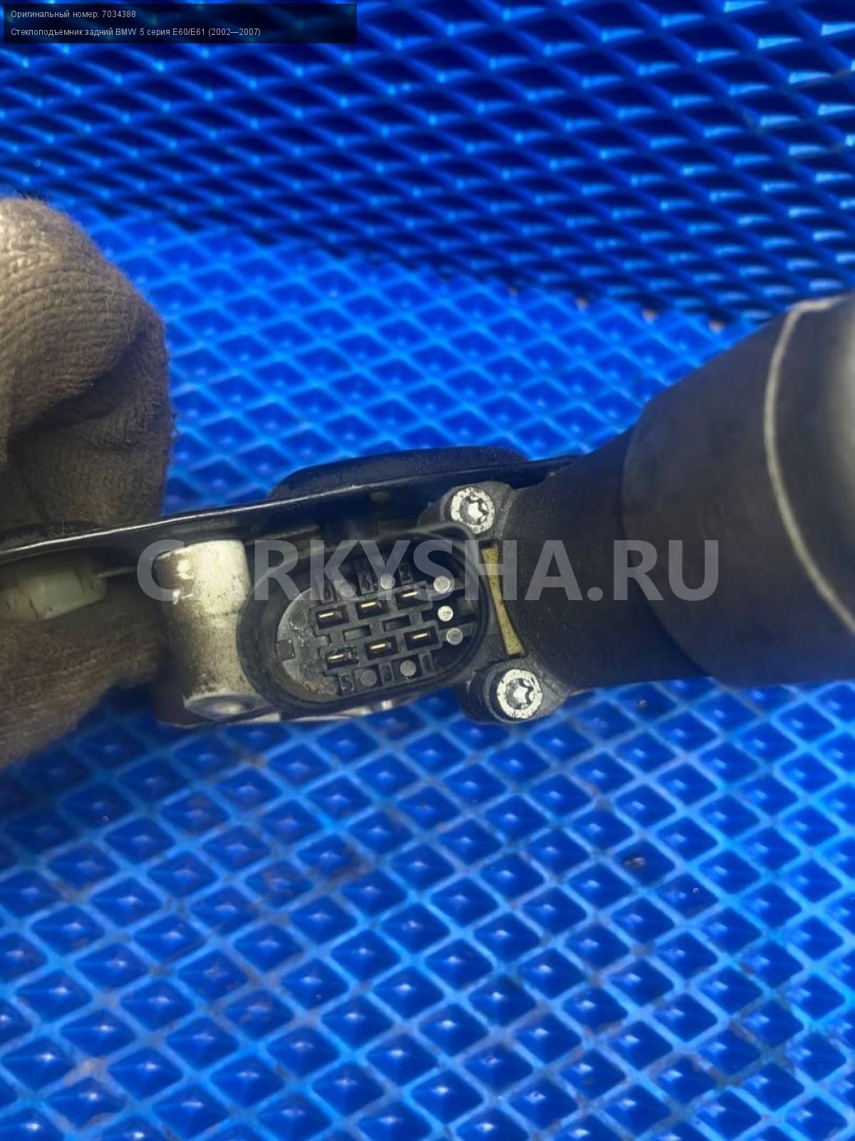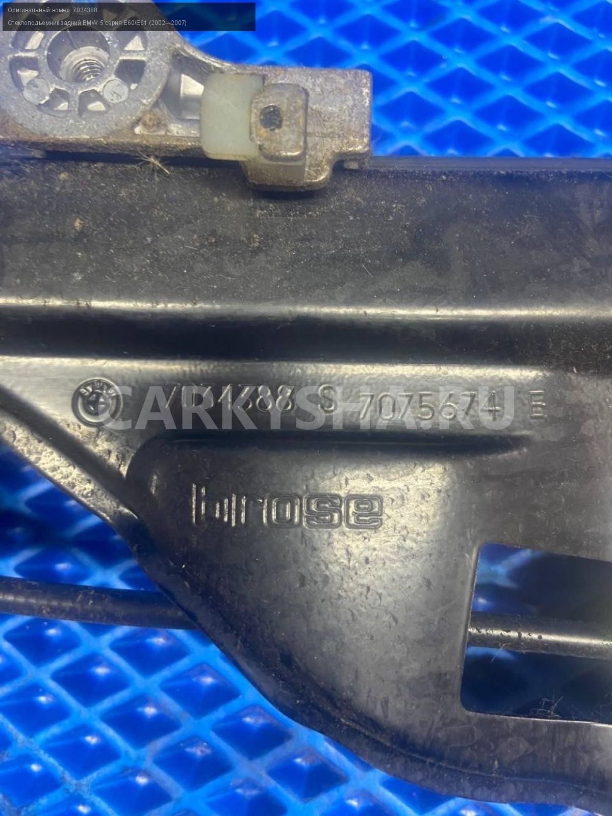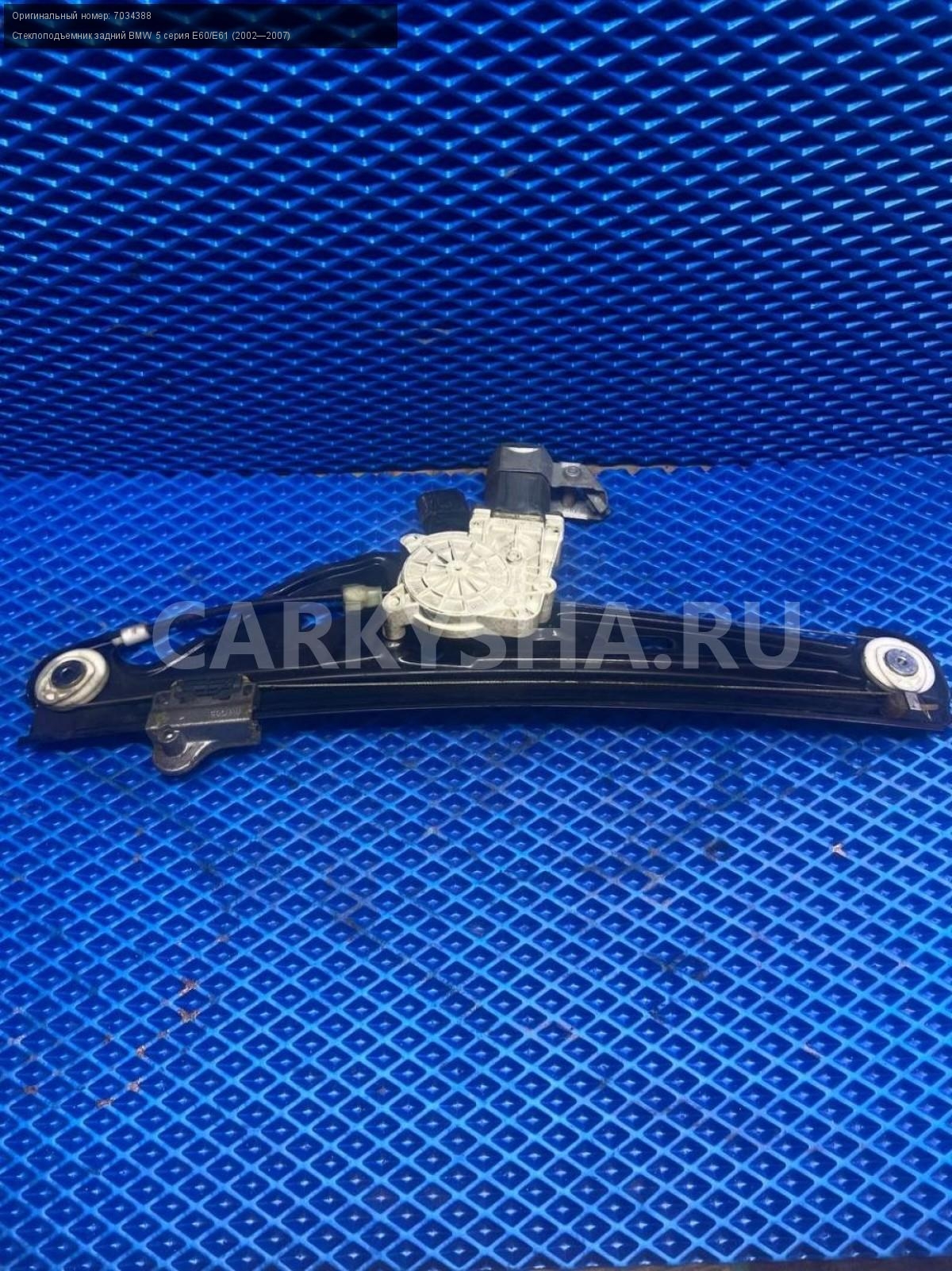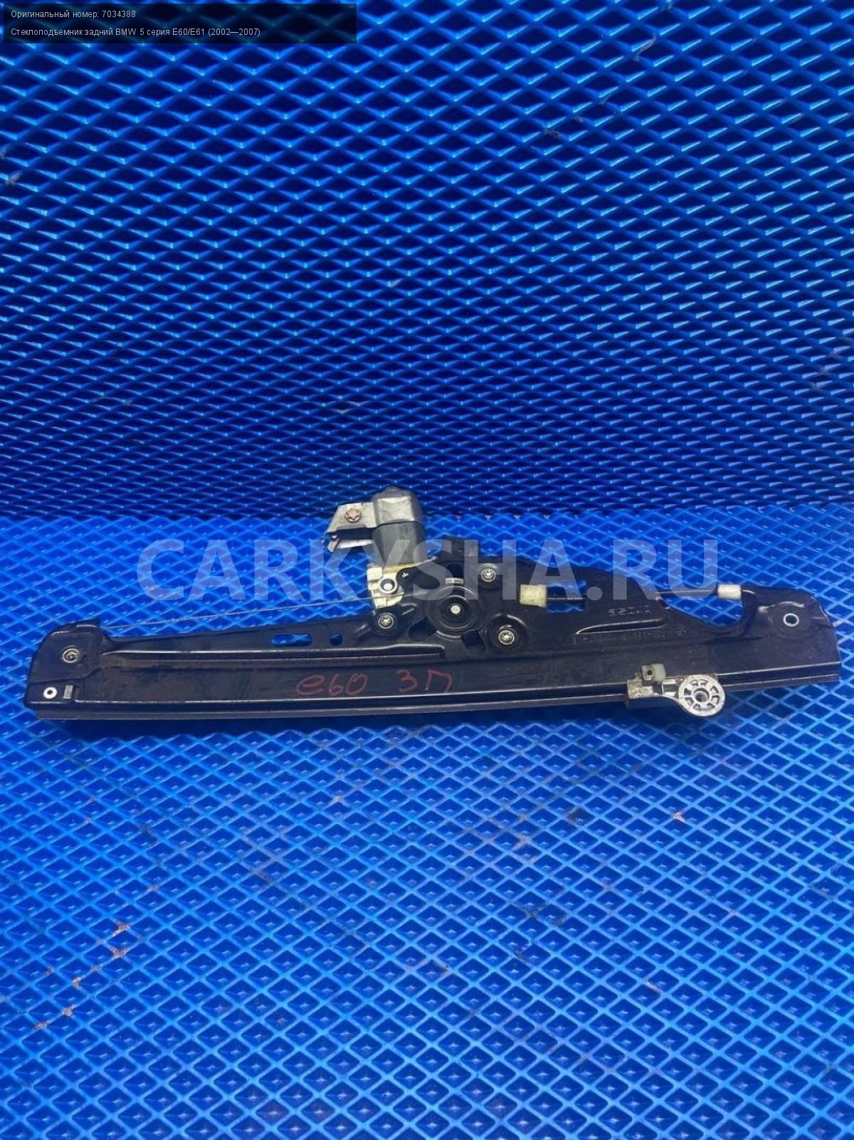 BMW 5 серия E60 дорест., стеклоподъемник задн прав\nАртикул: 7437\n\nОриг. номер: 7034388\nПроизводитель: BMW\nПримечание:БМВ 5 серия Е60 до рестайлинг, стеклоподъемник задний правый, б/у. \n\nМарка: BMW\nМодель: 5 серия E60/E61 (2002—2007)\nГод выпуска: 2005\nКузов тип: Седан\nДвигатель номер: N52B25\nМодель двигателя: инжектор\nОбъем: 2.5\nТопливо: Бензин\nКоробка: Автомат\nЦвет: Черный\nПраво/Лево: Право\nПеред/Зад: Зад\nСовместимости: BMW 5 серия E60/E61 (2002—2007) 525i 2.5 AT (218 л.с.)\nСовместимость: