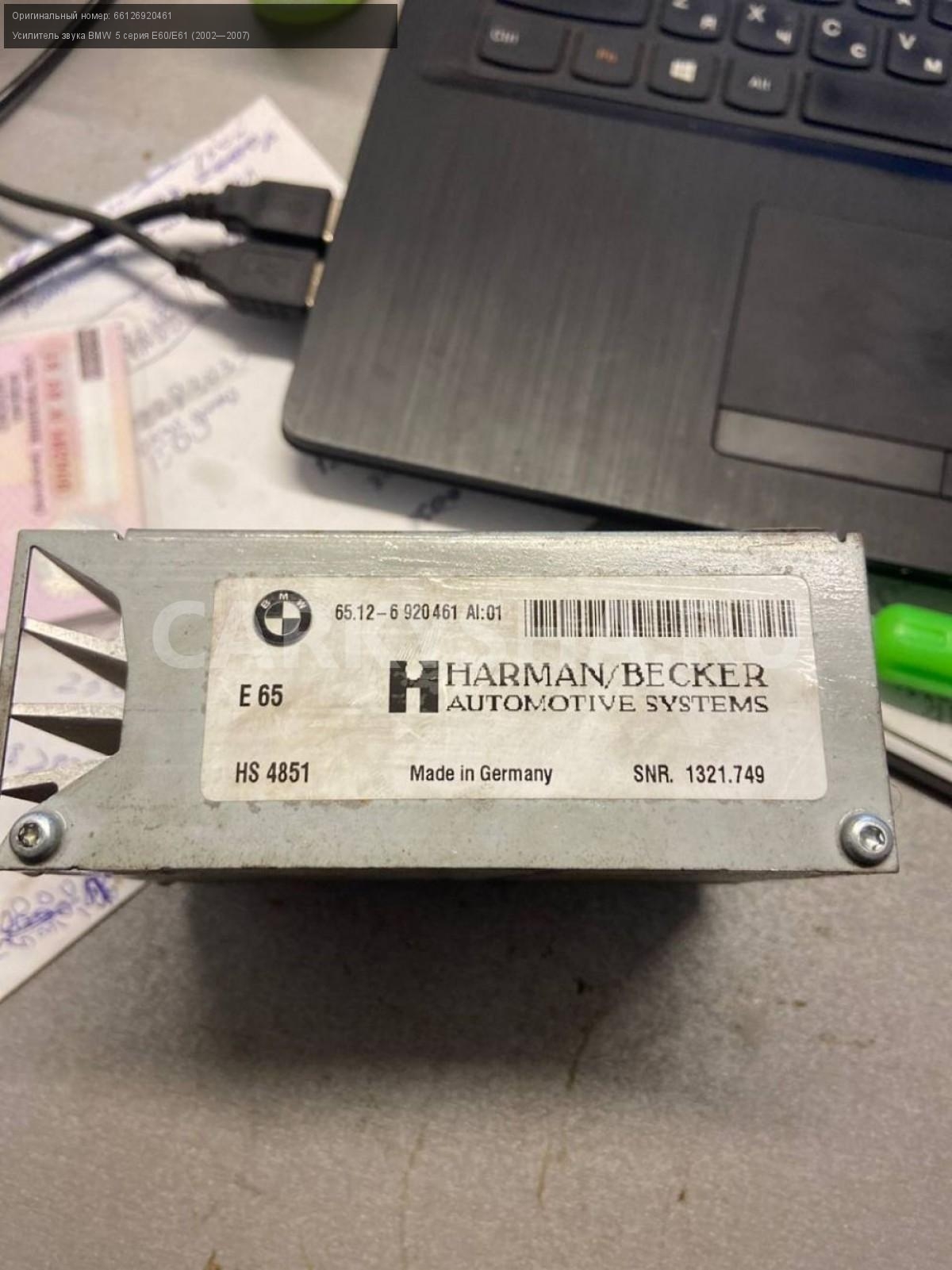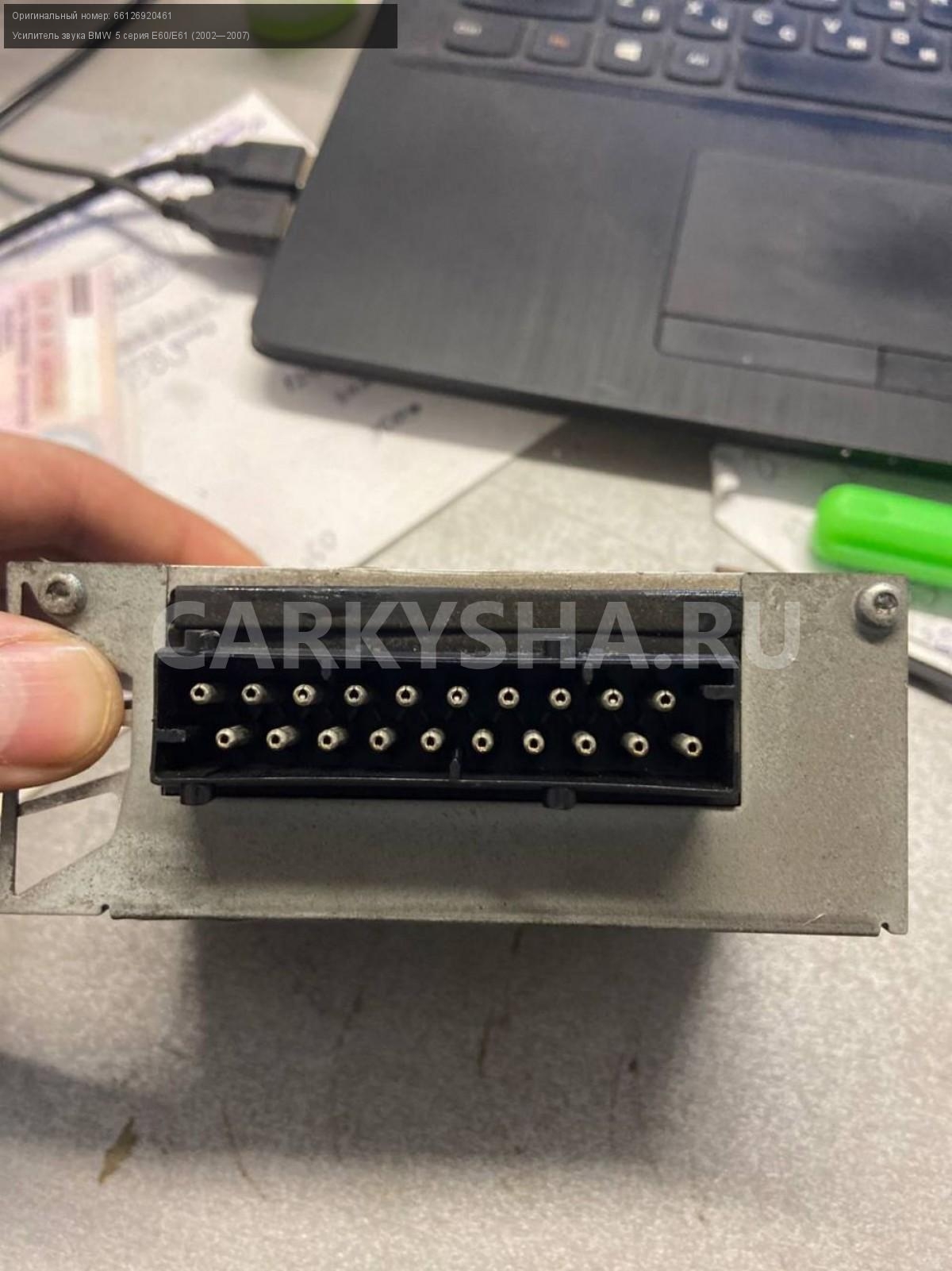 BMW 5 серия E60, усилитель звука.\nАртикул: 4008\n\nОриг. номер: 66126920461\nПроизводитель: BMW\nПримечание:БМВ 5 серия Е60, усилитель звука, б/у. \n\nМарка: BMW\nМодель: 5 серия E60/E61 (2002—2007)\nГод выпуска: 2005\nКузов тип: Седан\nДвигатель номер: N52B25\nМодель двигателя: инжектор\nОбъем: 2.5\nТопливо: Бензин\nКоробка: Автомат\nЦвет: Черный\nСовместимости: BMW 5 серия E60/E61 (2002—2007) 525i 2.5 AT (218 л.с.)\nСовместимость: