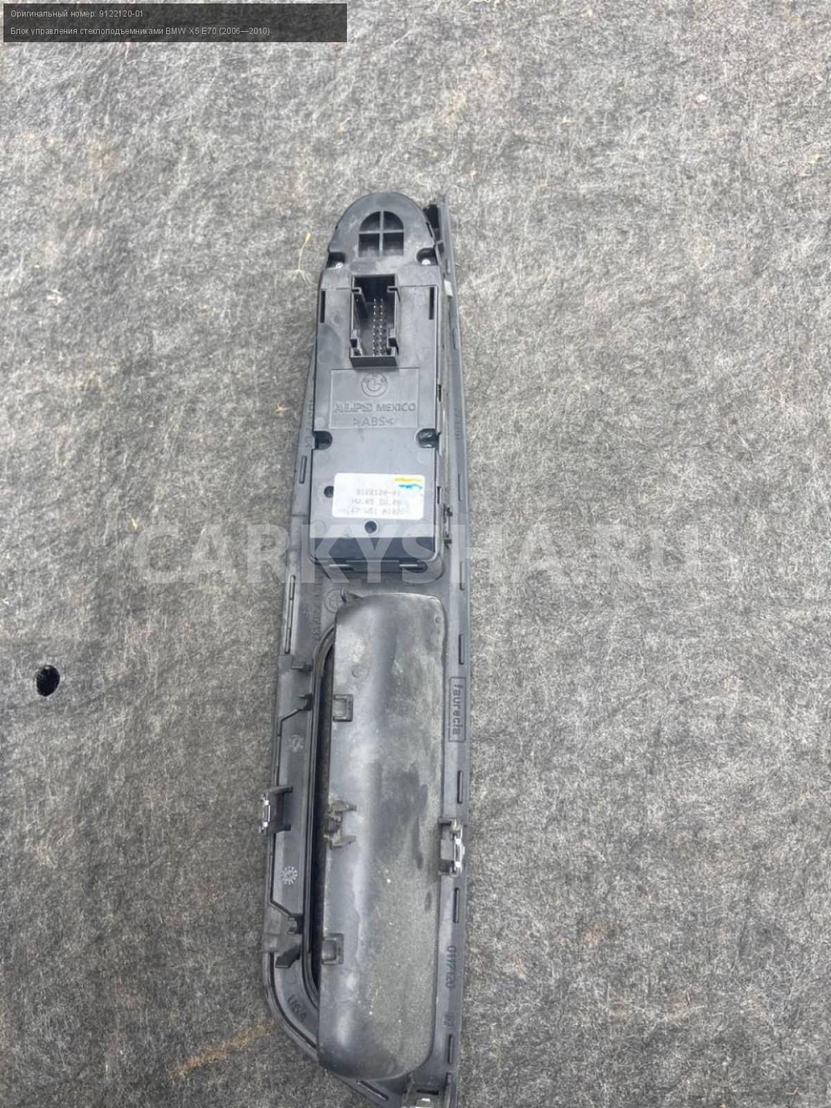 BMW X5 E70 , Блок управления стеклоподъемниками.\nАртикул: 5402\n\nОриг. номер: 9122120-01\nПроизводитель: BMW\nПримечание:БМВ Х5 Е70, блок управления стеклоподъемниками, б/у. \n\nМарка: BMW\nМодель: X5 E70 (2006—2010)\nГод выпуска: 2008\nКузов тип: Внедорожник\nДвигатель номер: N62B48\nМодель двигателя: инжектор\nОбъем: 4.8\nТопливо: Бензин\nКоробка: Автомат\nЦвет: Бежевый\nСовместимости: BMW X5 E70 (2006—2010) 48i 4.8 AT (355 л.с.)\nСовместимость: