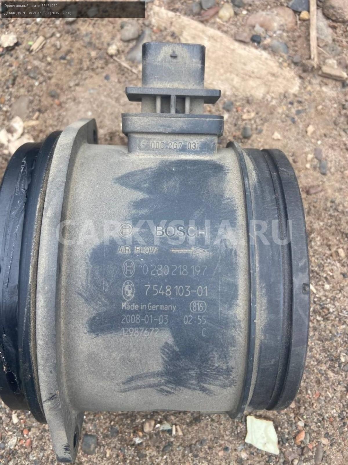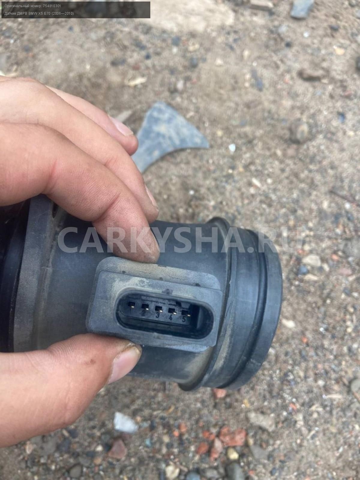 BMW X5 E70, 4.8, датчик ДМРВ.\nАртикул: 5273\n\nОриг. номер: 754810301\nПроизводитель: BMW\nПримечание:БМВ Х5 Е70, 4.8 датчик ДМРВ, б/у. \n\nМарка: BMW\nМодель: X5 E70 (2006—2010)\nГод выпуска: 2008\nКузов тип: Внедорожник\nДвигатель номер: N62B48\nМодель двигателя: инжектор\nОбъем: 4.8\nТопливо: Бензин\nКоробка: Автомат\nЦвет: Бежевый\nСовместимости: BMW X5 E70 (2006—2010) 48i 4.8 AT (355 л.с.)\nСовместимость: