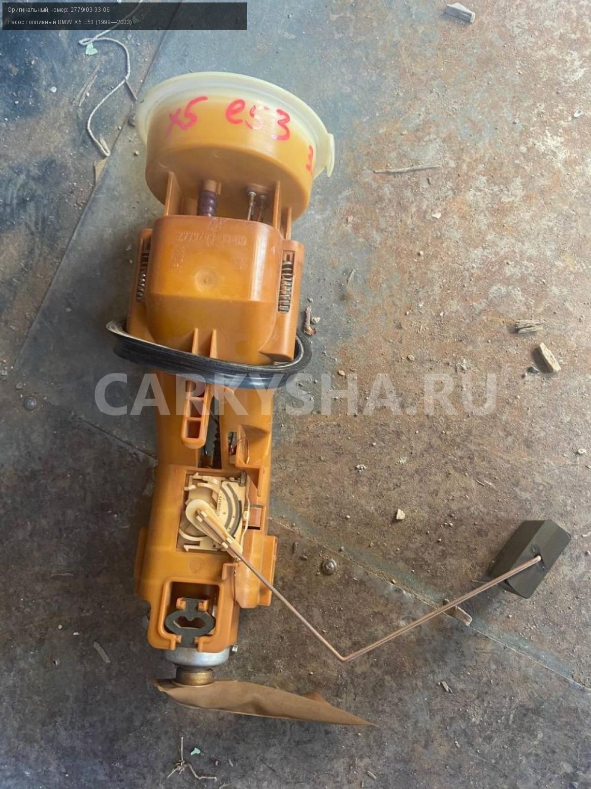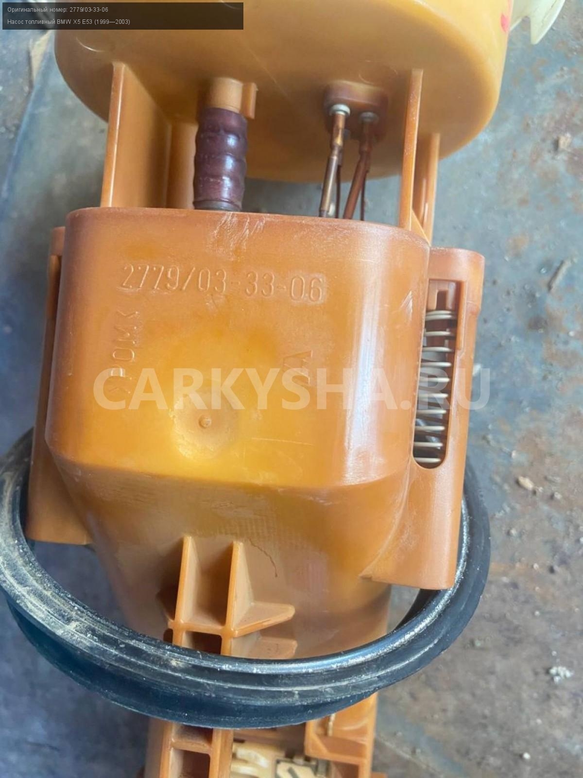 BMW X5 E53, 3.0 м54 ,насос топливный.\nАртикул: 5556\n\nОриг. номер: 2779/03-33-06\nПроизводитель: BMW\nПримечание:БМВ Х5 Е53, 3.0 М54, насос топливный, б/у. \n\nМарка: BMW\nМодель: X5 E53 (1999—2003)\nГод выпуска: 2001\nКузов тип: Внедорожник\nДвигатель номер: M54B30\nМодель двигателя: инжектор\nОбъем: 3.0\nТопливо: Бензин\nКоробка: Автомат\nЦвет: Черный\nСовместимости: BMW X5 E53 (1999—2003) 3.0i 3.0 AT (231 л.с.)\nСовместимость: