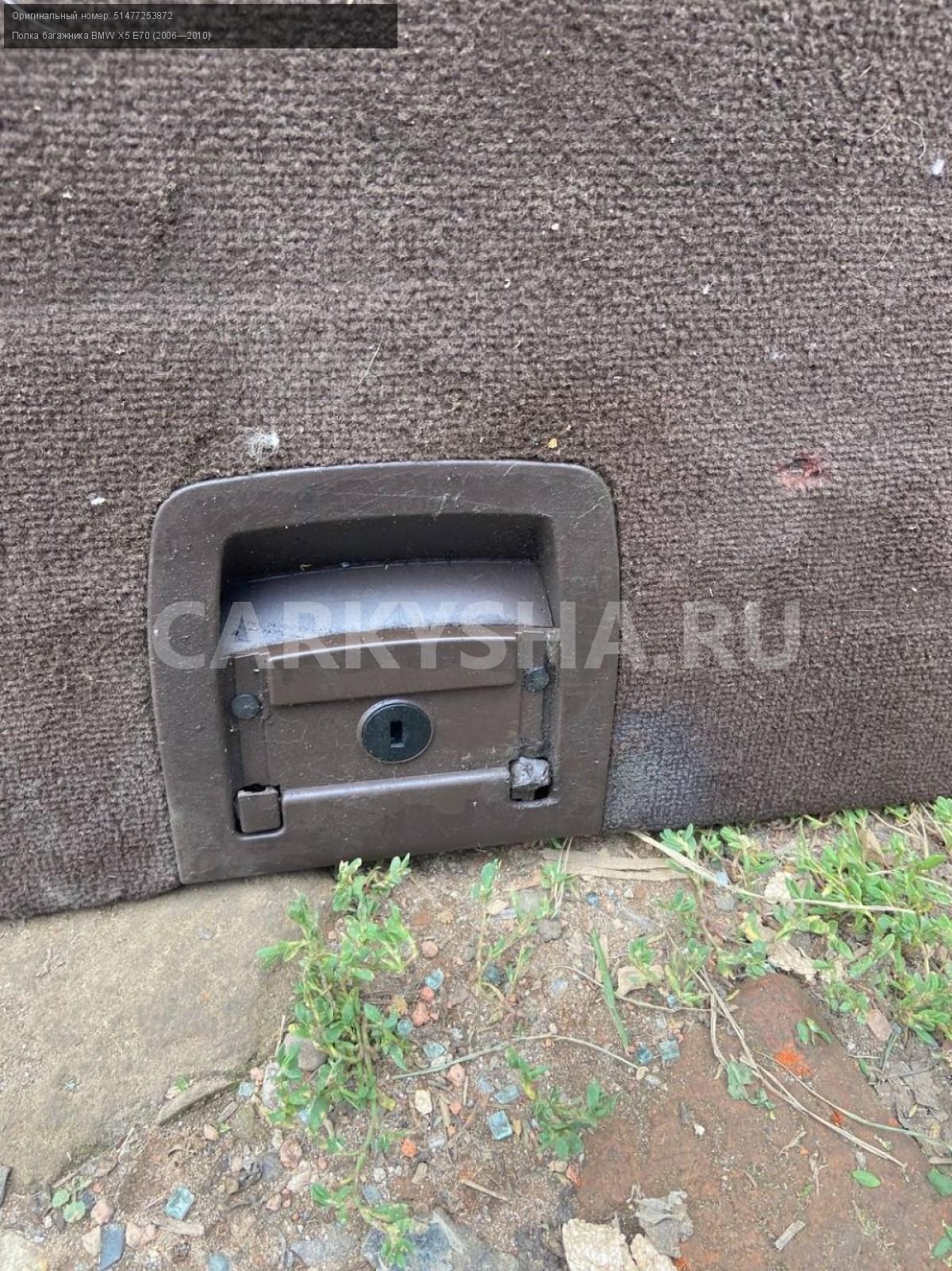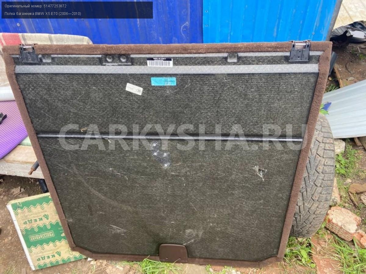 BMW X5 E70, полка в нишу багажника.\nАртикул: 5429\n\nОриг. номер: 51477253872\nПроизводитель: BMW\nПримечание:БМВ Х5 Е70, полка в нишу багажника , сломана ручка , бу. \n\nМарка: BMW\nМодель: X5 E70 (2006—2010)\nГод выпуска: 2008\nКузов тип: Внедорожник\nДвигатель номер: N62B48\nМодель двигателя: инжектор\nОбъем: 4.8\nТопливо: Бензин\nКоробка: Автомат\nЦвет: Бежевый\nСовместимости: BMW X5 E70 (2006—2010) 48i 4.8 AT (355 л.с.)\nСовместимость: