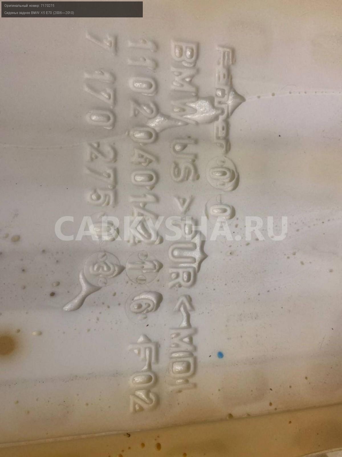 BMW X5 E70, Обшивка сидения заднего правого.\nАртикул: 5340\n\nОриг. номер: 7170275\nПроизводитель: BMW\nПримечание:БМВ Х5 Е70, кожаная обшивка заднего правого сидения ( без подогрева) , б/у. \n\nМарка: BMW\nМодель: X5 E70 (2006—2010)\nГод выпуска: 2008\nКузов тип: Внедорожник\nДвигатель номер: N62B48\nМодель двигателя: инжектор\nОбъем: 4.8\nТопливо: Бензин\nКоробка: Автомат\nЦвет: Бежевый\nПраво/Лево: Право\nПеред/Зад: Зад\nСовместимости: BMW X5 E70 (2006—2010) 48i 4.8 AT (355 л.с.)\nСовместимость:
