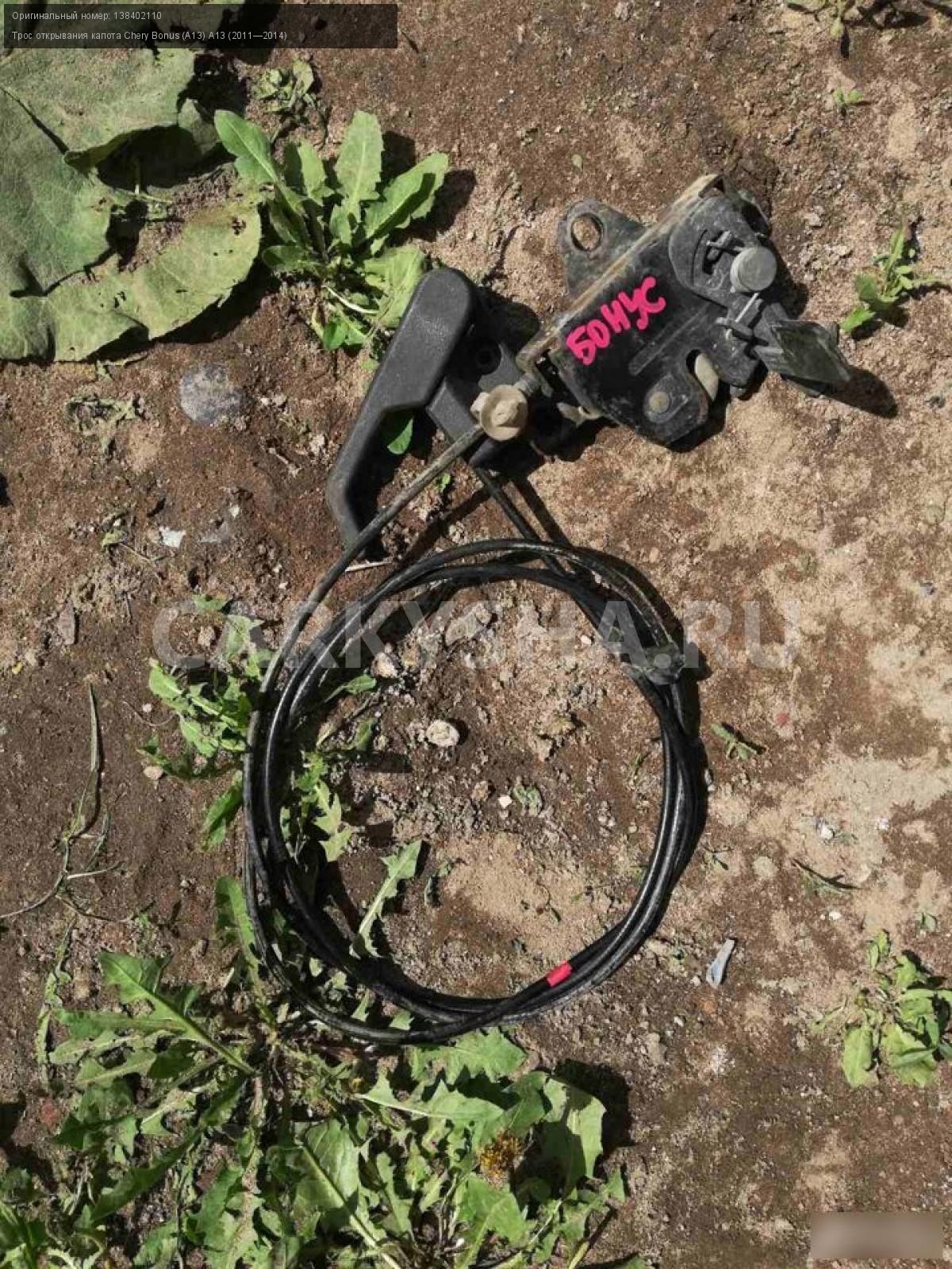 Chery bonus тросик капота\nАртикул: 1214\n\nОриг. номер: 138402110\nПроизводитель: CHERY\nПримечание:Chery bonus,чери вери тросик капота с замком, бу, а так же множество авто в разборе, работаем с регионами отправка тк, выкуп авто после дтп по всей России, отправка тк осуществляется после 100% оплаты, наложенным платежом не работаем, стоимость доставки не рассчитываем\n\nМарка: Chery\nМодель: Bonus (A13) A13 (2011—2014)\nКузов тип: Хетчбэк\nОбъем: 1.5\nТопливо: Бензин\nКоробка: Механика\nСовместимости: Chery Bonus (A13) A13 (2011—2014) 1.5 MT (109 л.с.)\nСовместимость: